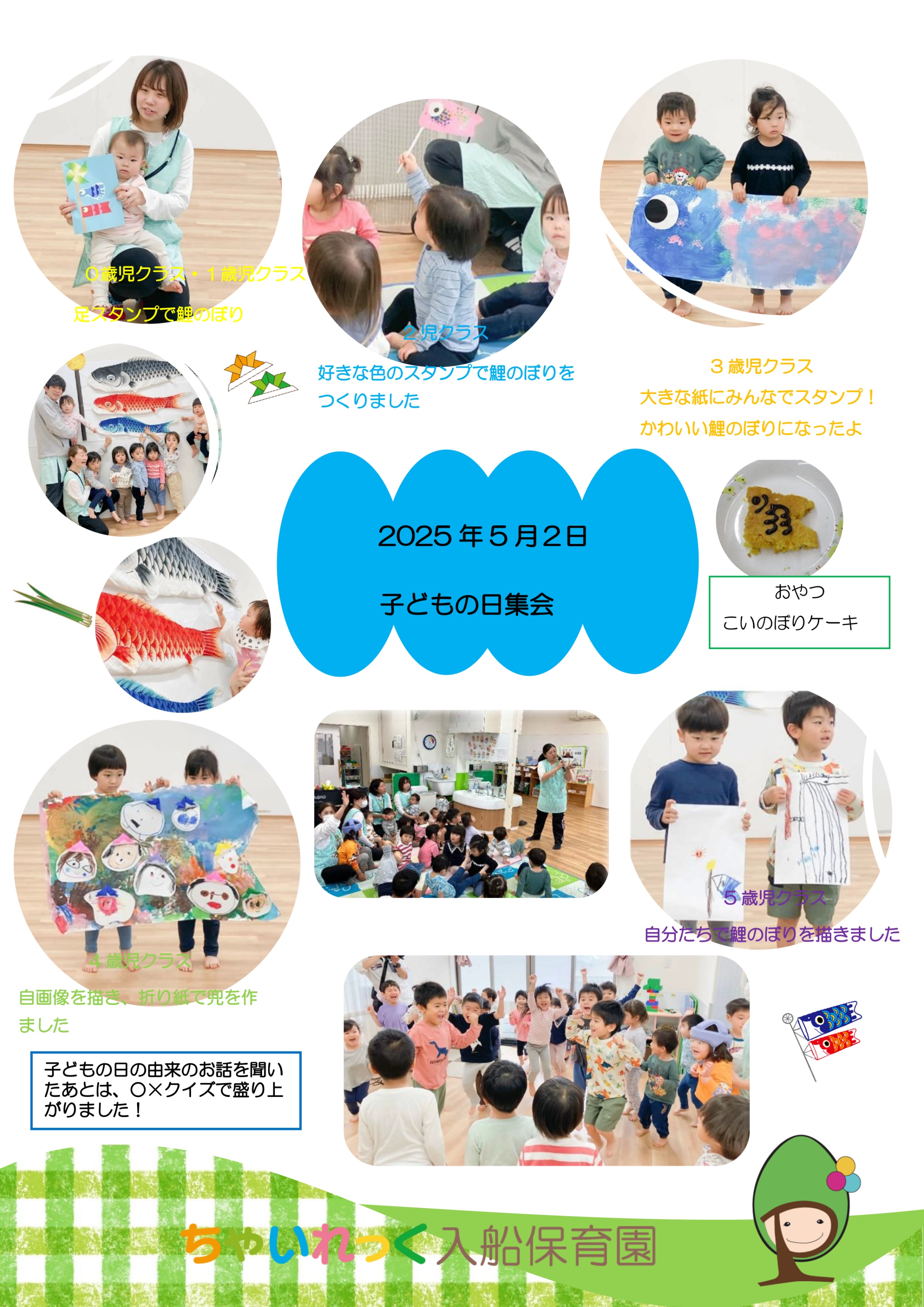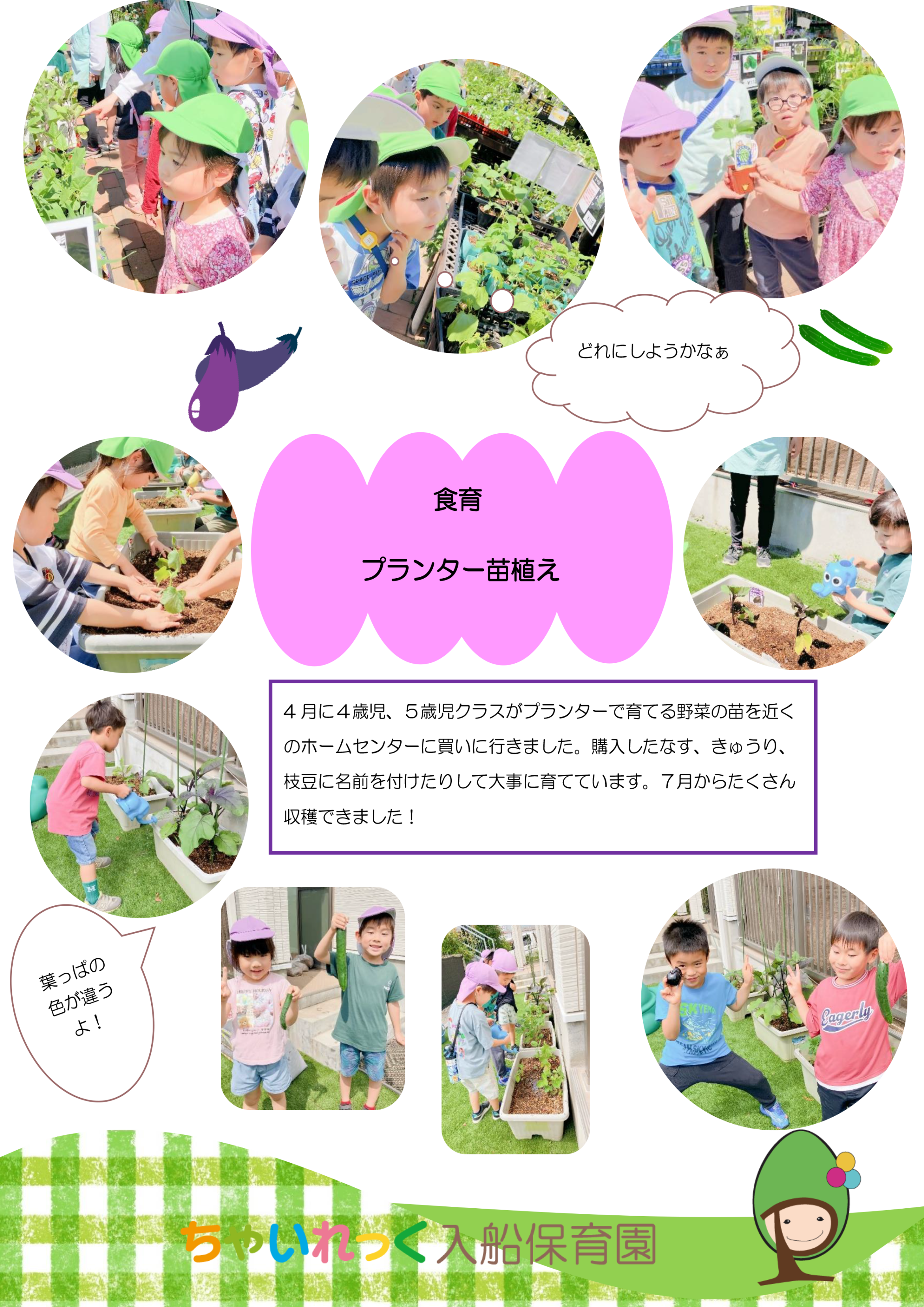 こんにちは!ちゃいれっく入船保育園の今年度8月までの様子をご紹介します♪