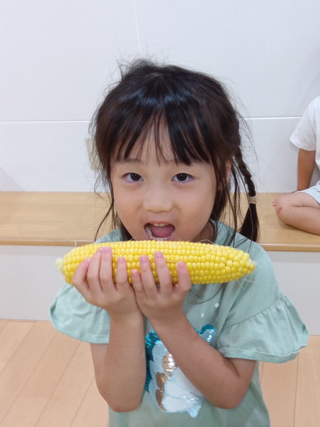 数日後のお散歩の際に、「またトウモロコシの皮むきがしたい」とリクエストがあるくらい楽しかったようです。