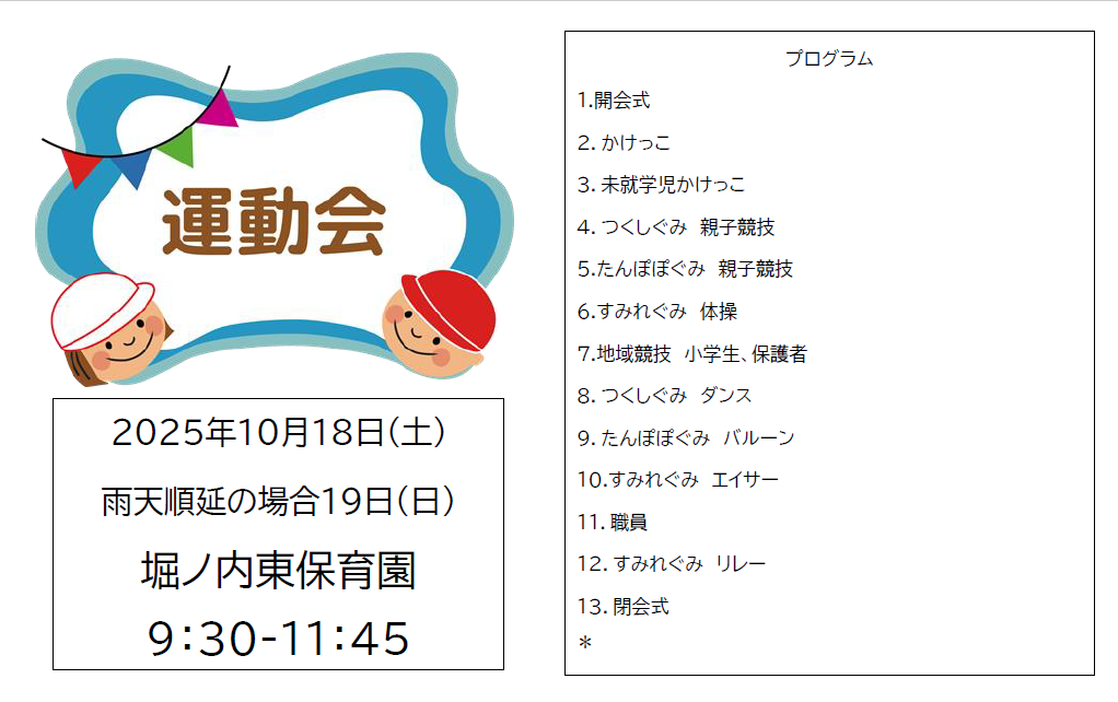 ※雨天の場合は19日(日)に順延両日共雨天の際は、地域の方の参加競技はございません
