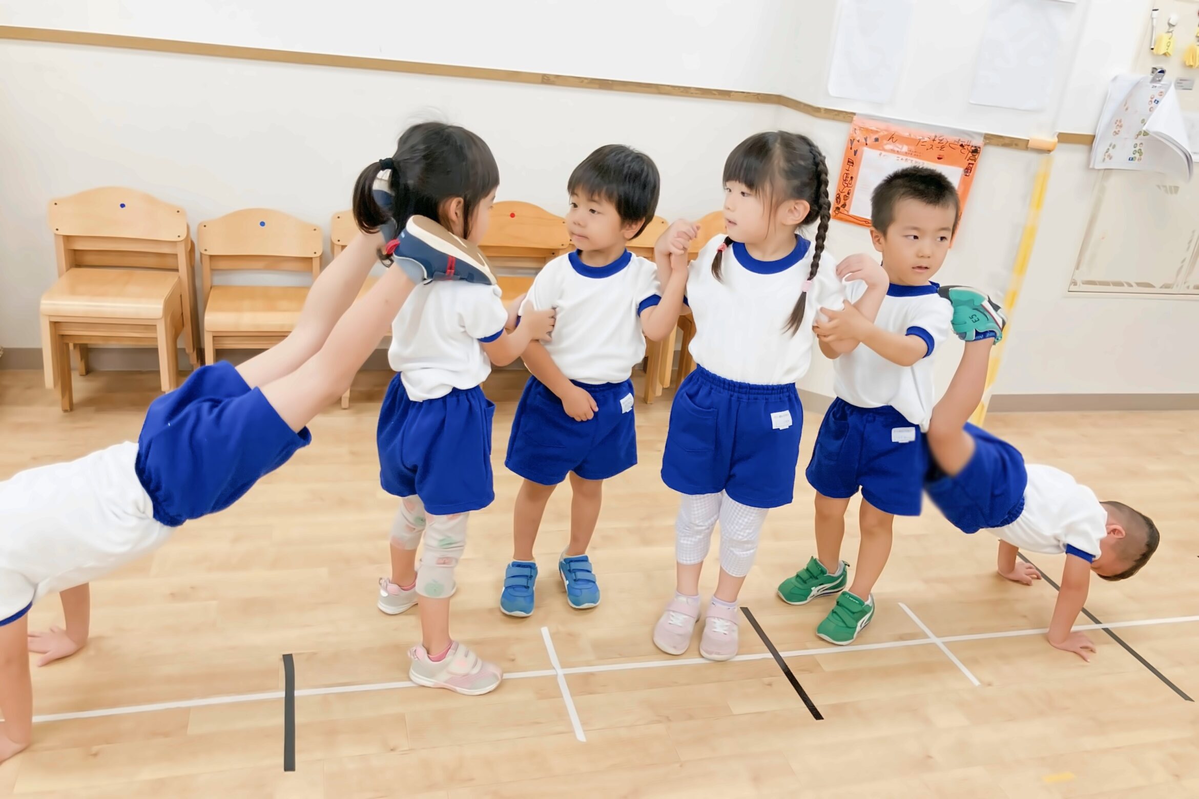 幼児さん(3、4、5歳児クラス)では毎週水曜日に体操の先生が来園して体操教室をしています。