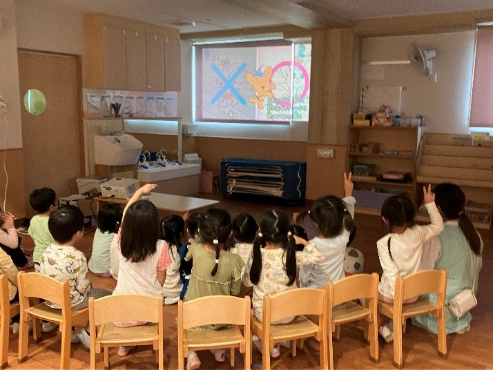 ゆきぐみ・そらぐみ(年中・年長)さんはピーポー君のDVDを用いて防犯について教えていただきました👮🏼♂️
