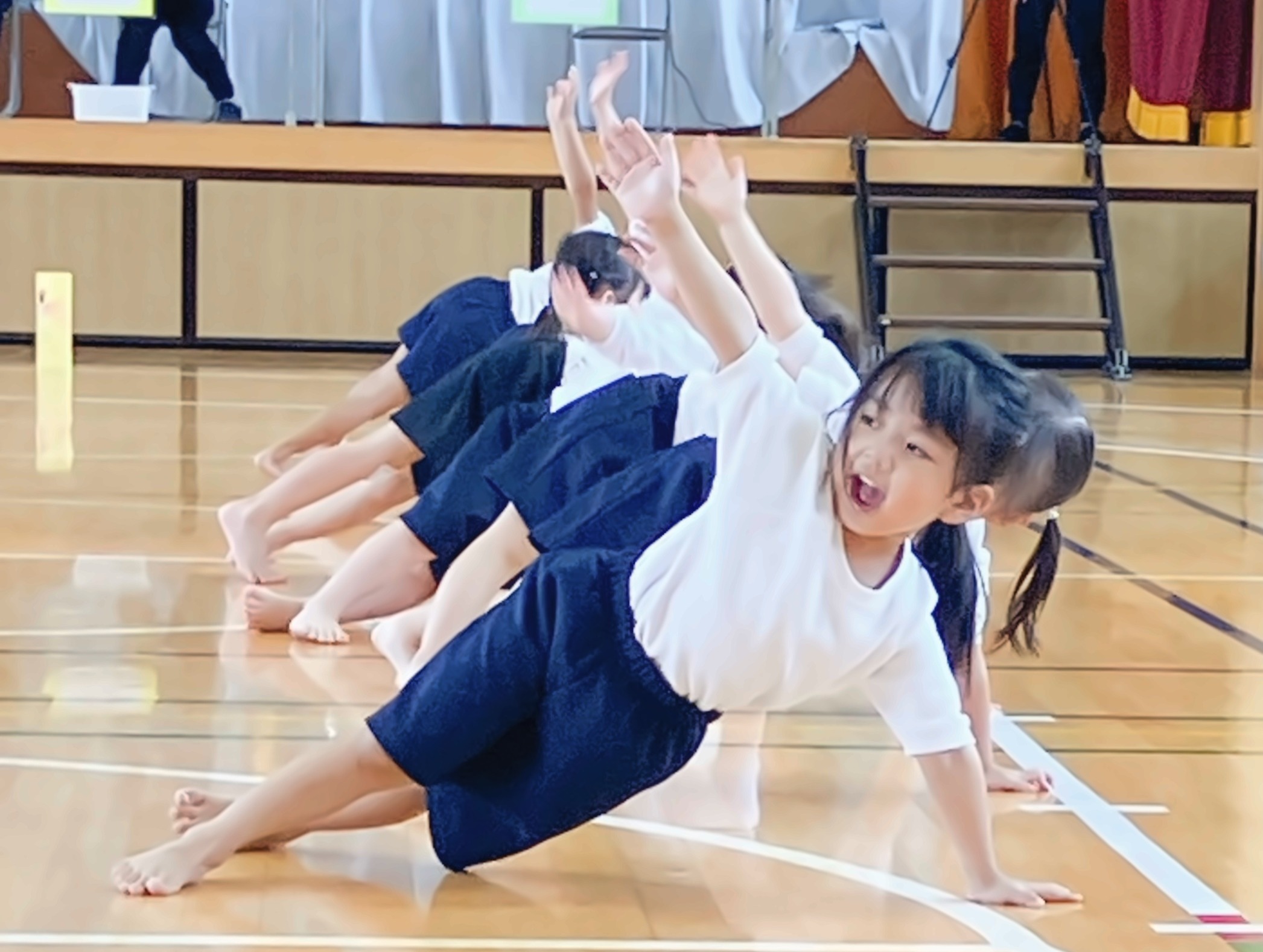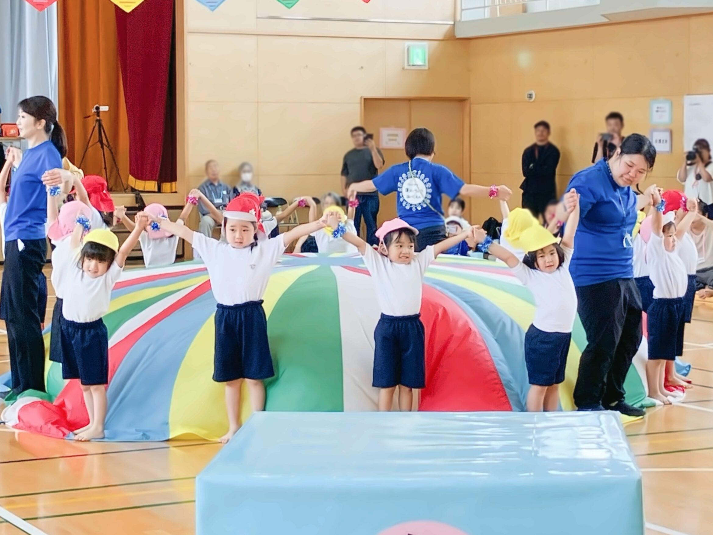 3歳児~5歳児クラスになると、カラーガードにパラバルーン、全員リレーに組体操と盛りだくさんの内容で、どの競技も一生懸命頑張りました!!!