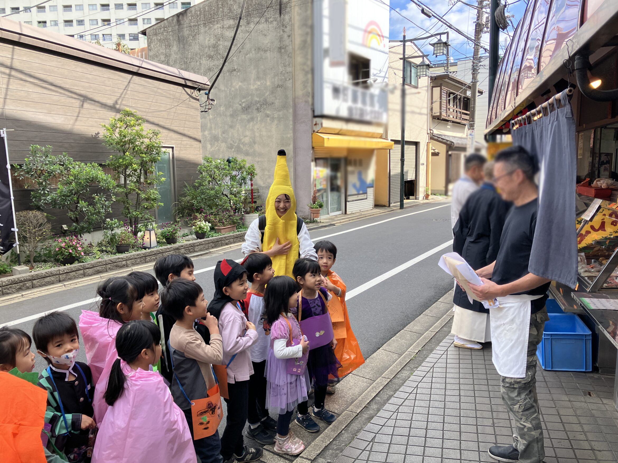 近所の商店街の方にご協力いただき「トリックorトリート!」でお菓子をゲット!