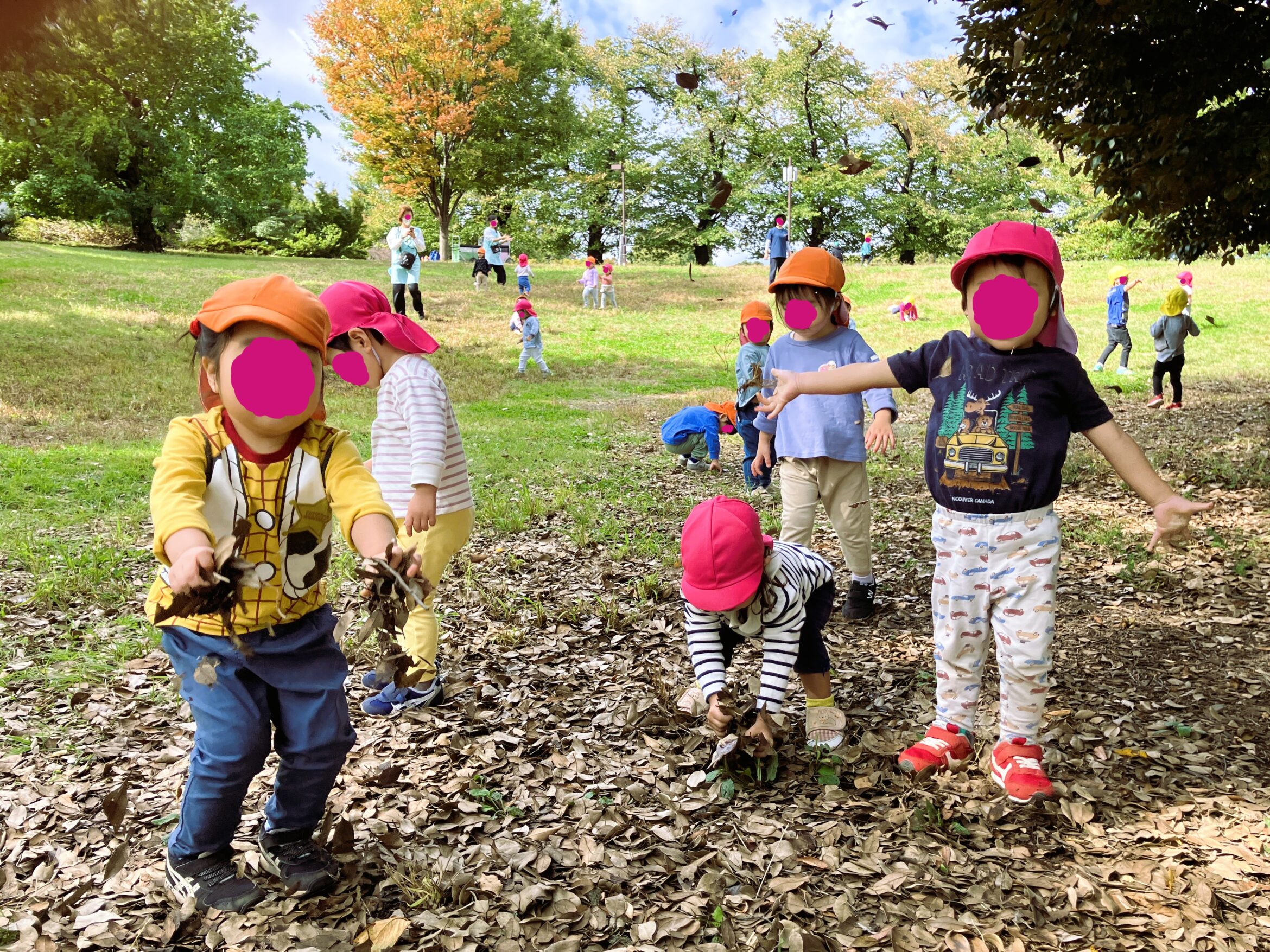 1.2歳児クラスが公園へ秋を探しに行った様子です。