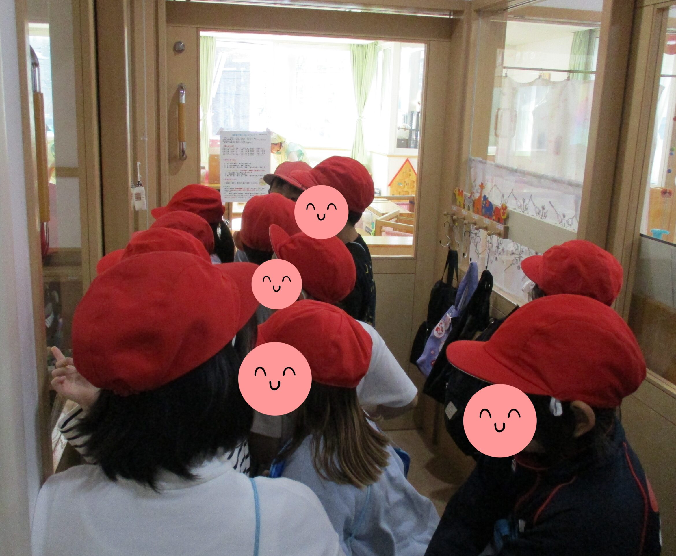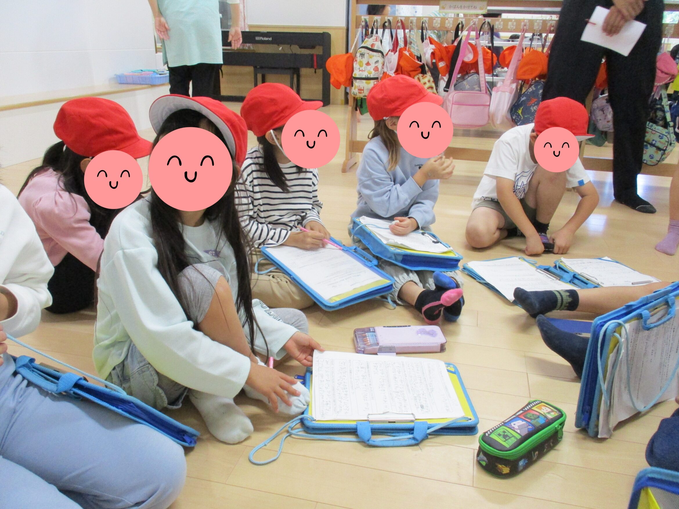 最後は各クラス見学を終えてホールで保育士にインタビュー。11名のグループの中には、卒園児のお子さんもいて、グループリーダーを務めていました。みんなをまとめたり、インタビューの進行などもおこない、素敵な姿が見られて、とても嬉しかったです。グループの中には、在園児の兄姉さんの姿もあり、保育園での妹たちの姿を見て嬉しそうにしている姿がとても印象的でした。