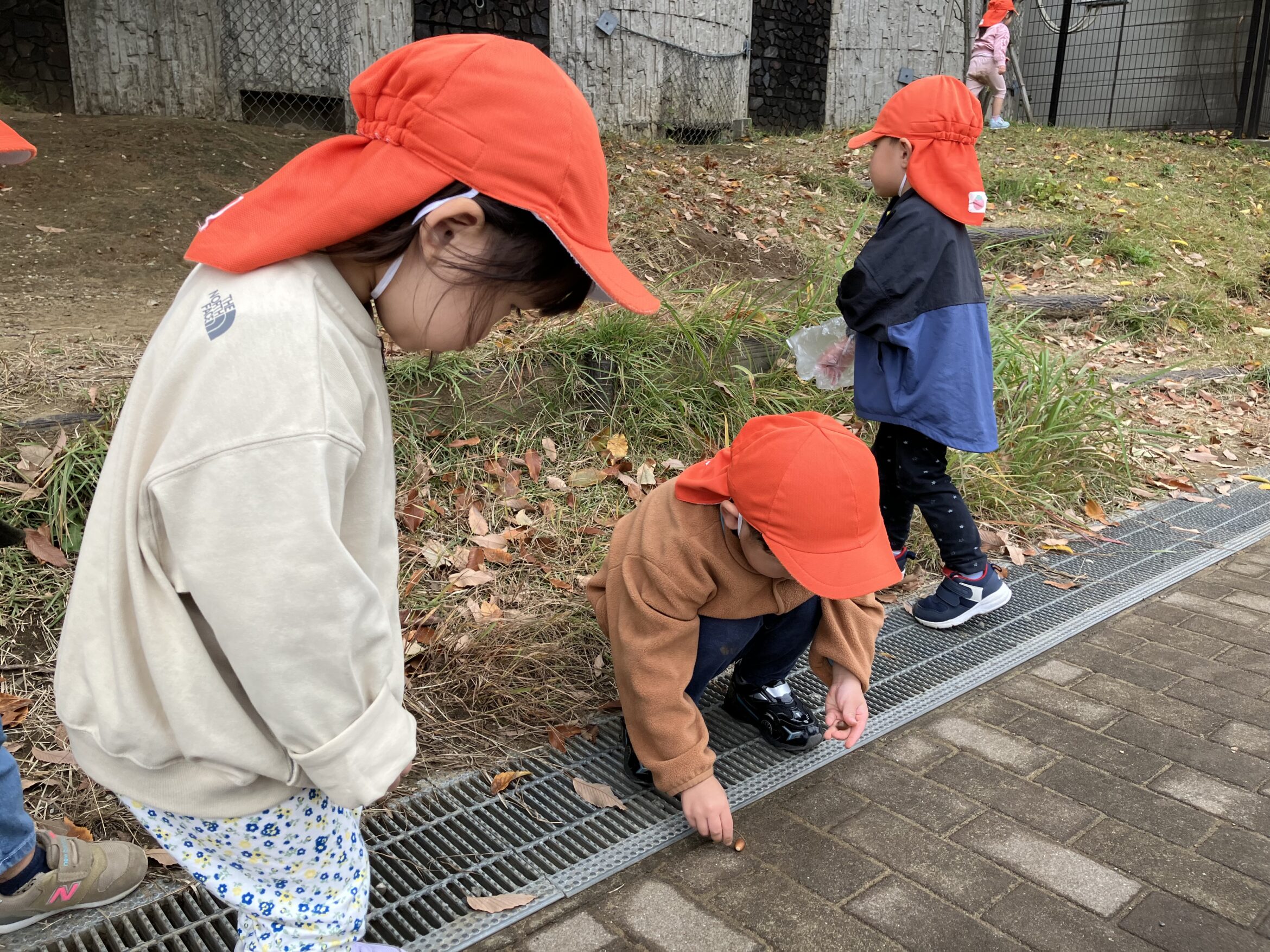 秋を感じながら、お散歩を楽しむたんぽぽ組(2歳児)の様子です。