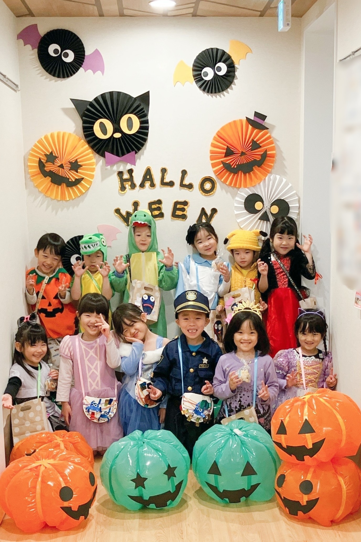 当日は仮装してきてもOKな日で子どもたちは色々な衣装に身を包み、近隣を仮装パレードしました。