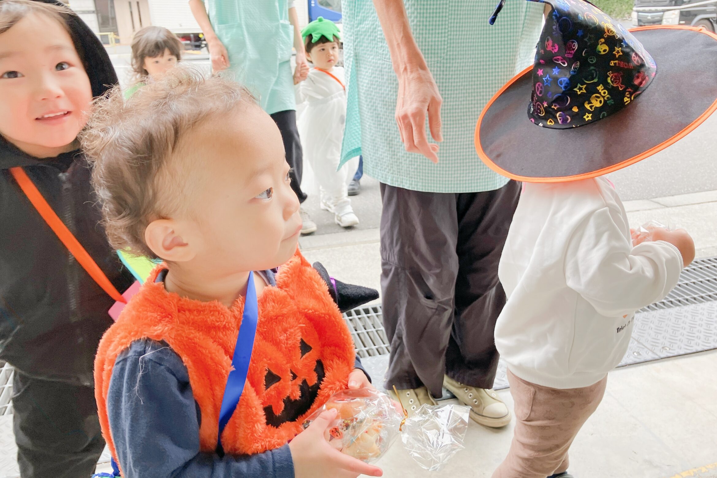 近隣の方々にもご協力いただき、子どもたちが「トリックオアトリート!」と言うと、お菓子をくださいました。可愛い姿で現れる子どもたちを、地域のみなさまも笑顔で迎えてくださいました。