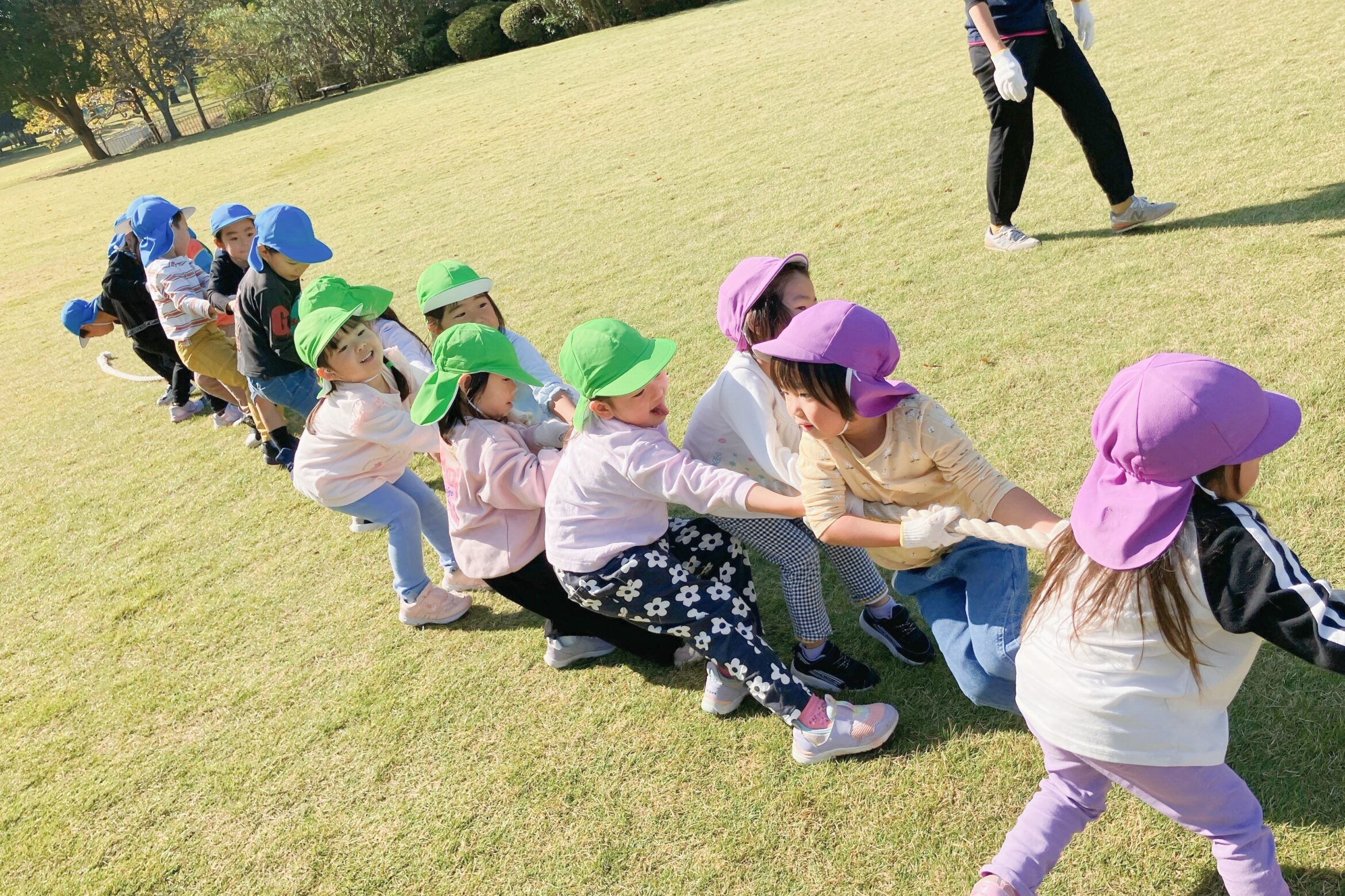 2025.12.05 葛飾区立小谷野しょうぶ保育園 バス遠足(3~5歳児クラス) 千葉こどもの国 Kids Dom に行って来ました! これからいっぱい遊んで来まっす!! まずは綱引き オーエス!! オーエス!! アスレチックコース おなかぺっこぺこ。いただきまーす! 汽車に乗って出発進行! いっぱい遊んで疲れたね。おやすみなさい・・・