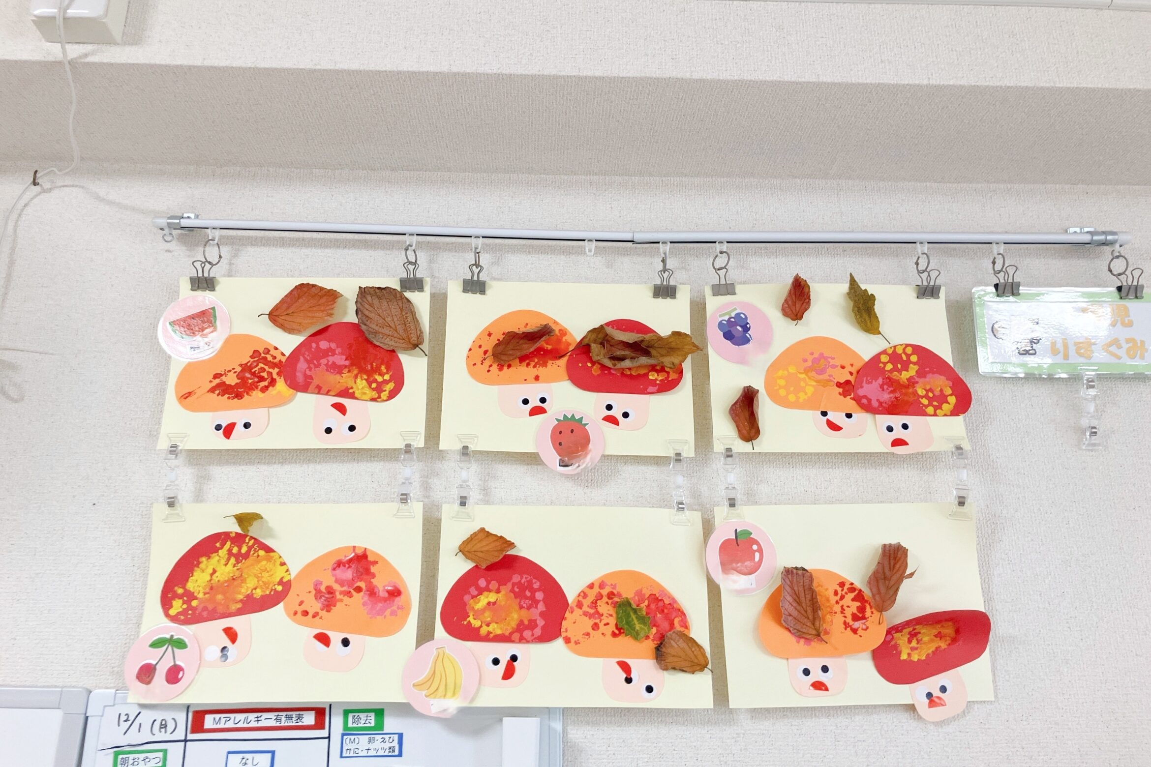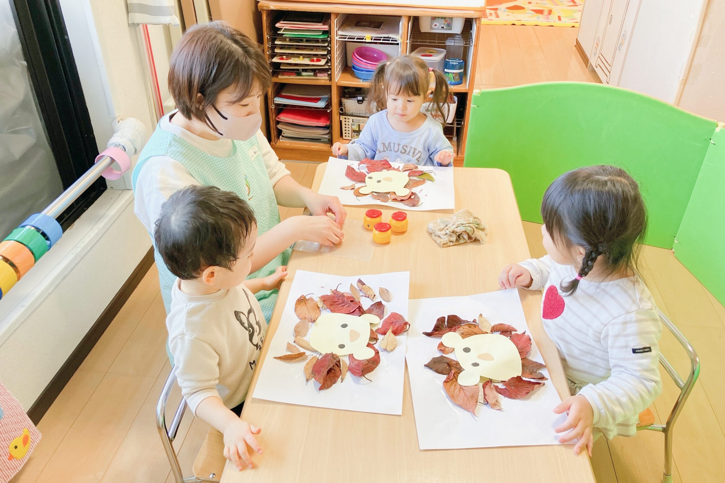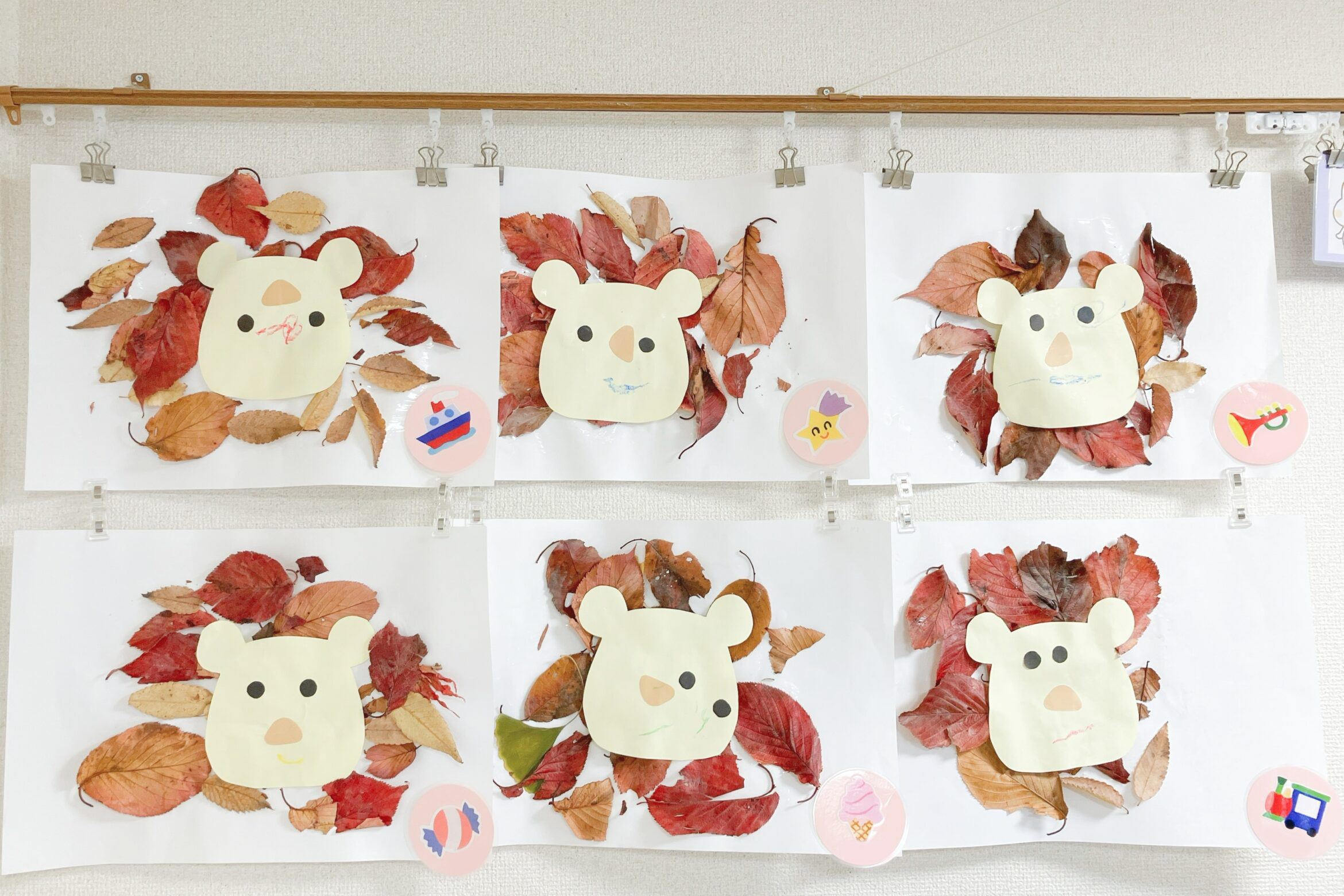 自分たちで拾ってきた落ち葉を使って製作を楽しみました。