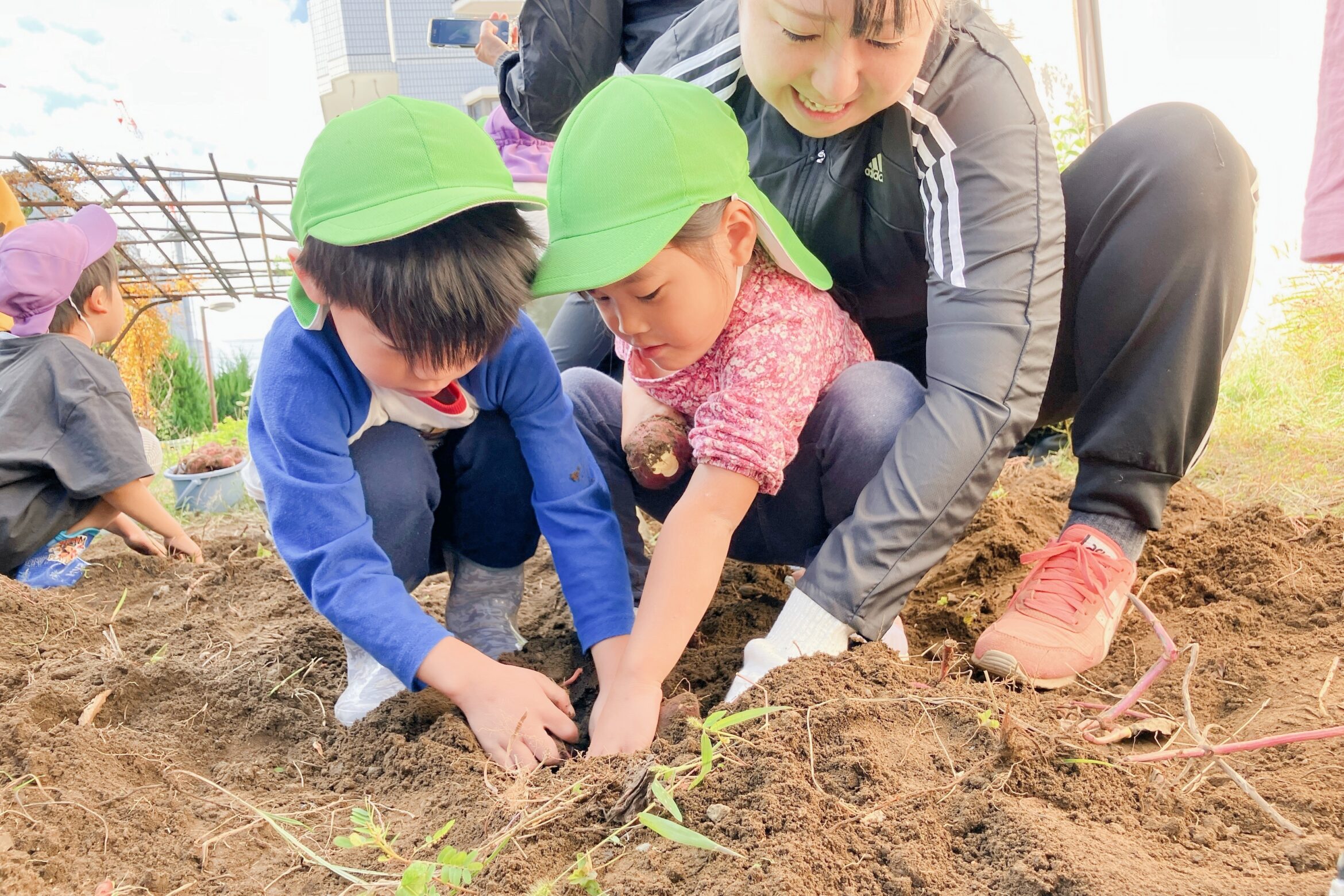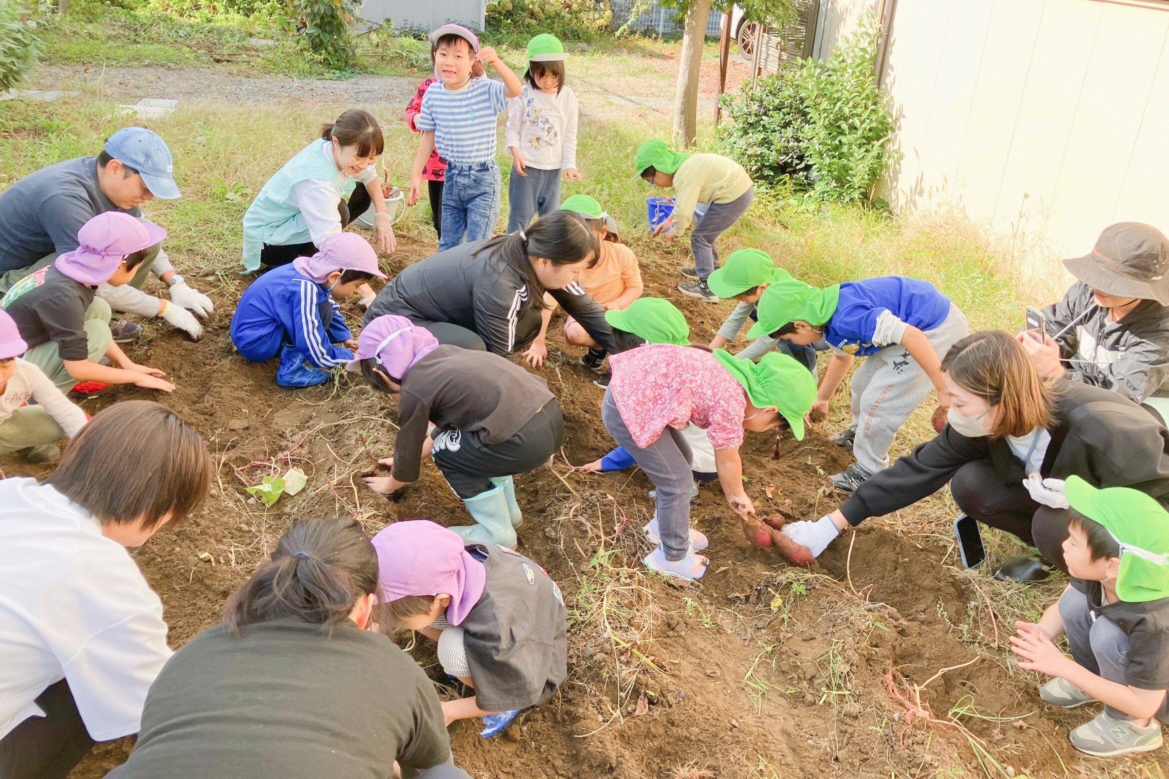 保育園の隣にある畑で、保護者の方々も一緒に、サツマイモの芋ほりを行いました。
