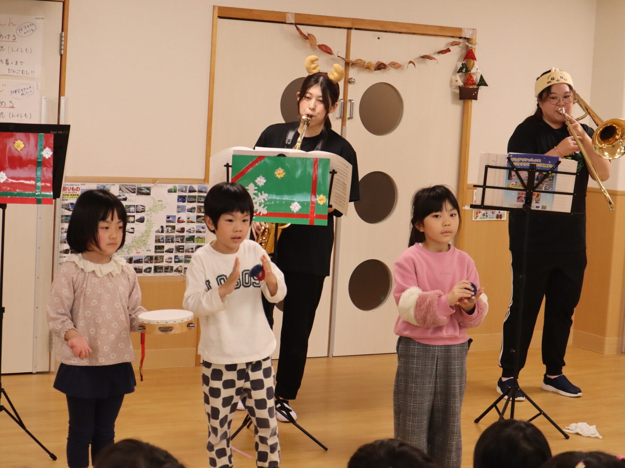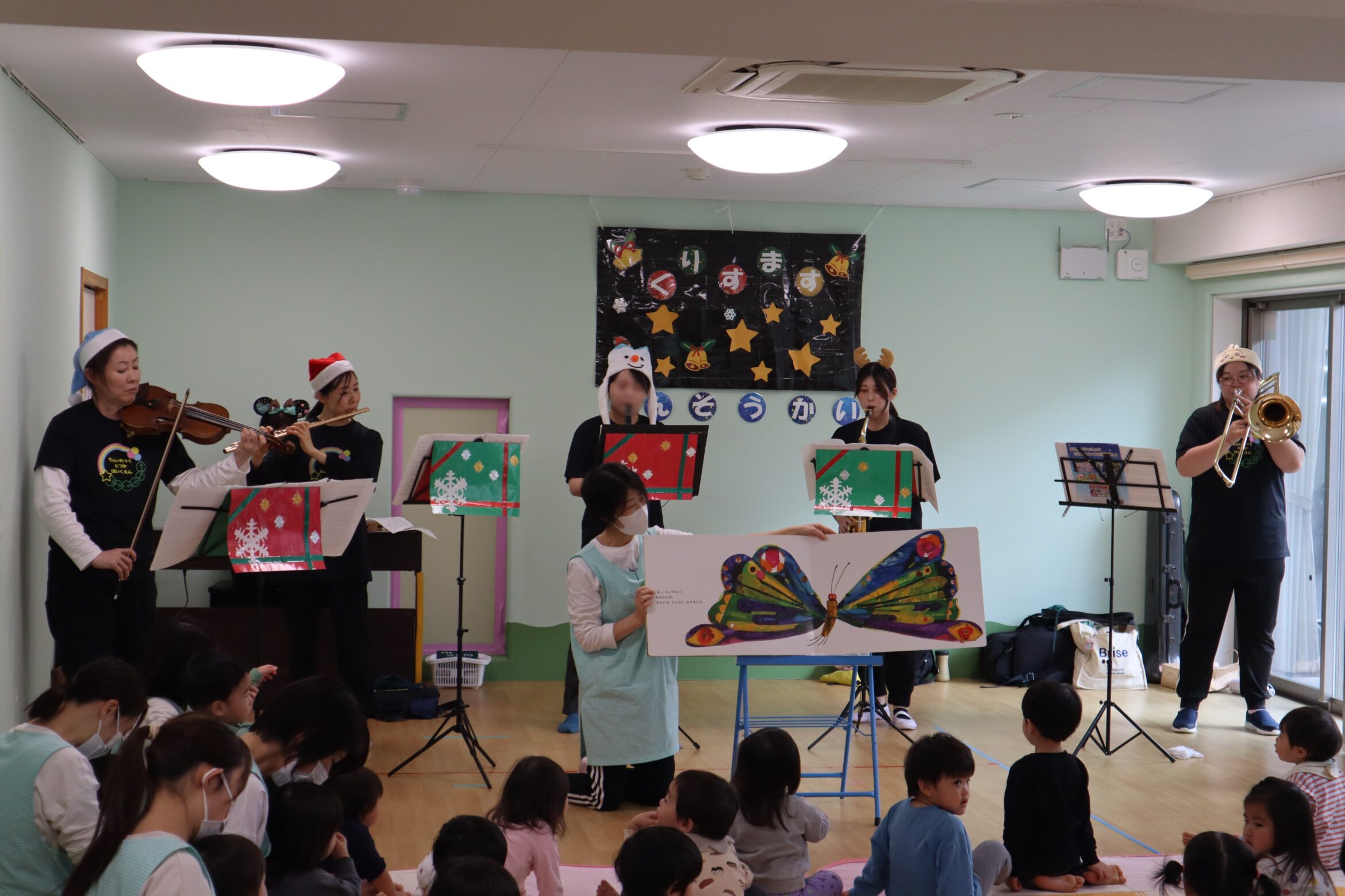 クリスマスソングはもちろん、子どもたちの大好きな「はらぺこあおむし」の絵本に合わせた演奏も♪