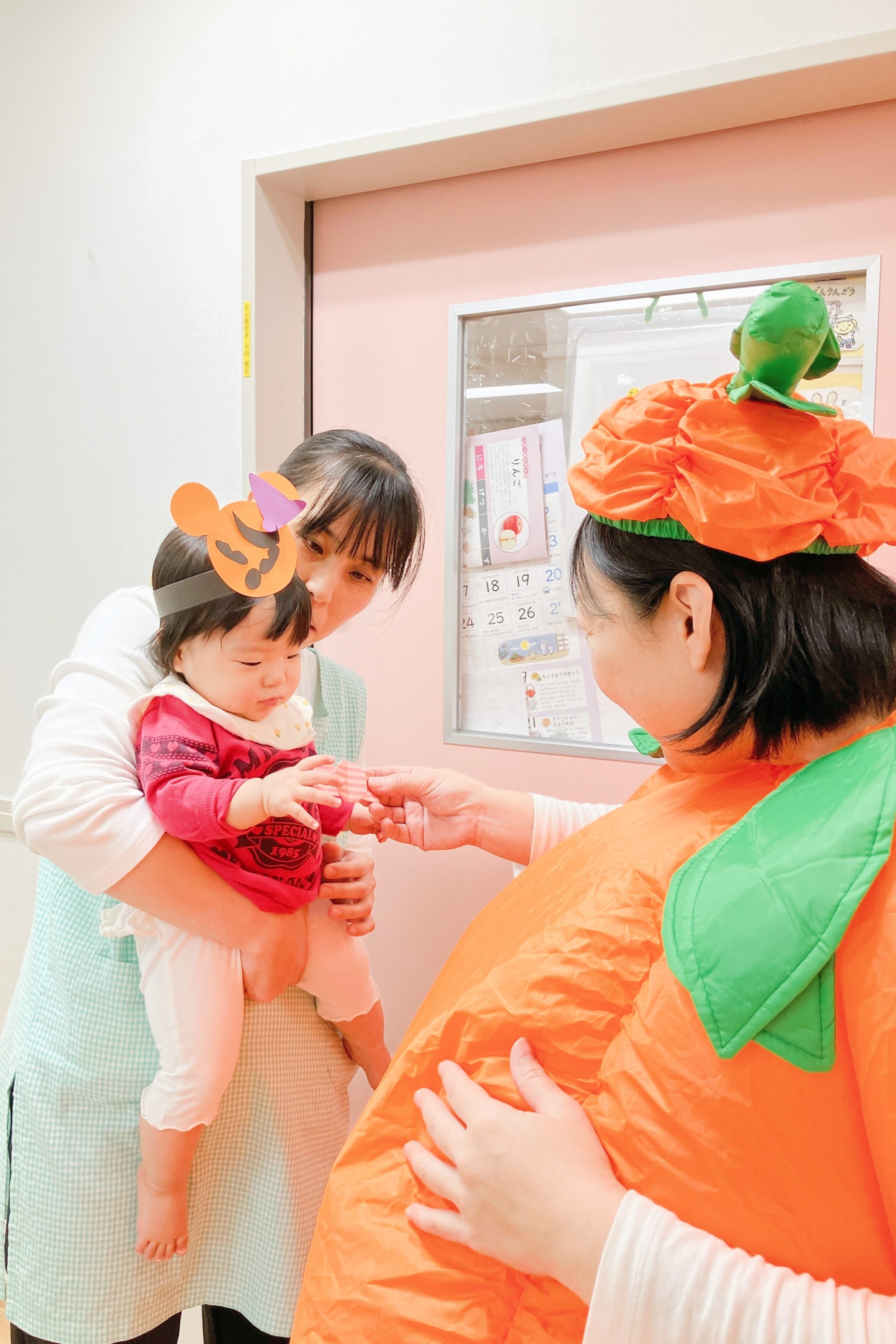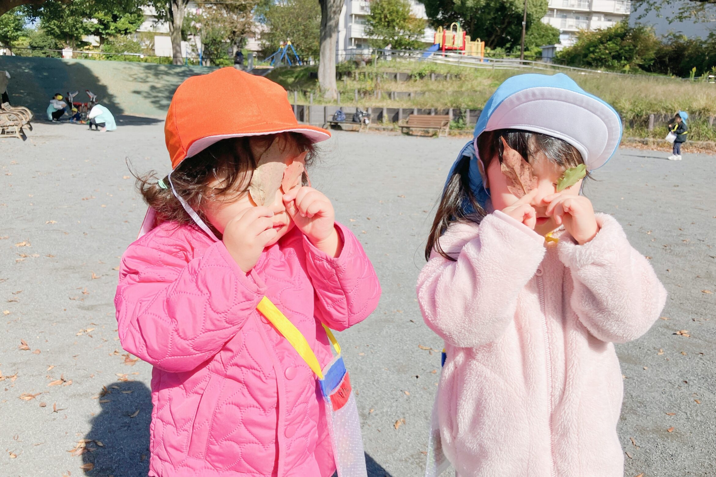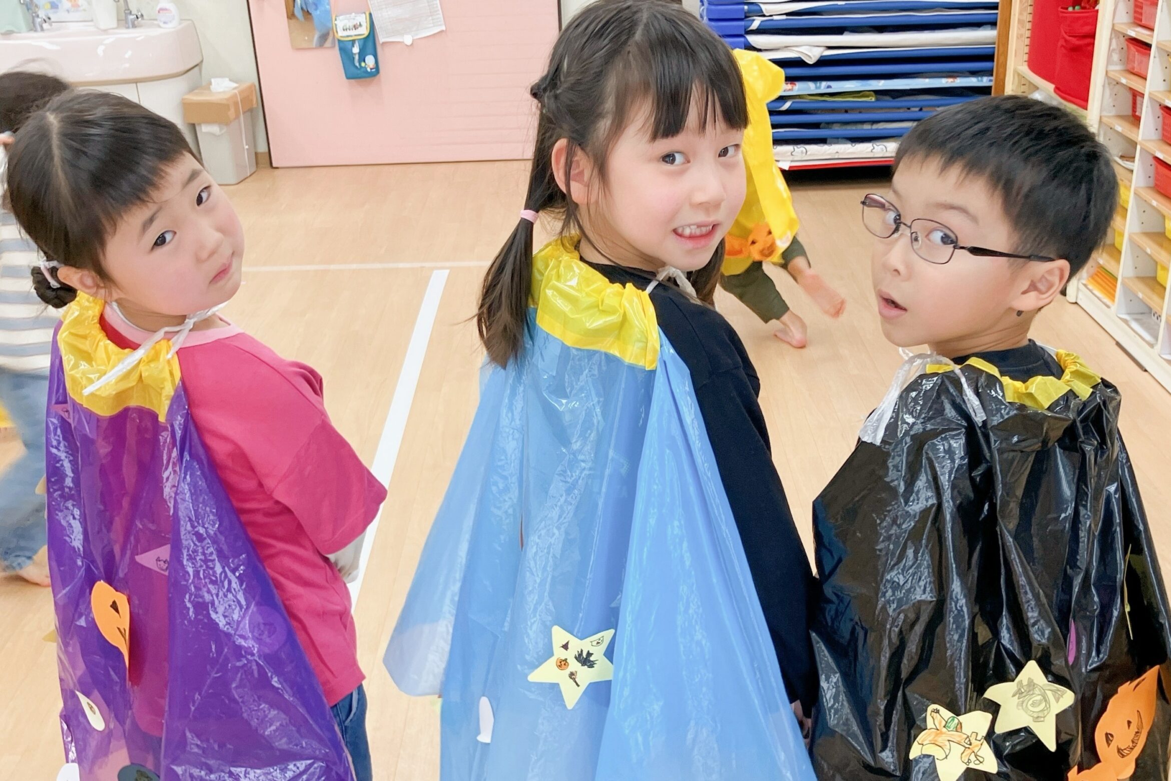 2025.12.15 前田町保育園 秋探しとハロウィン 秋を探しにLet’s Go!かわいい笑顔でTrick or Treat! 枯れ葉を見つけて、いないいないばあっ!とっても可愛い秋を見つけました! 手作りマントで仮装!Happy Halloween! かぼちゃに仮装した園長先生から、キャンディーをもらいました!