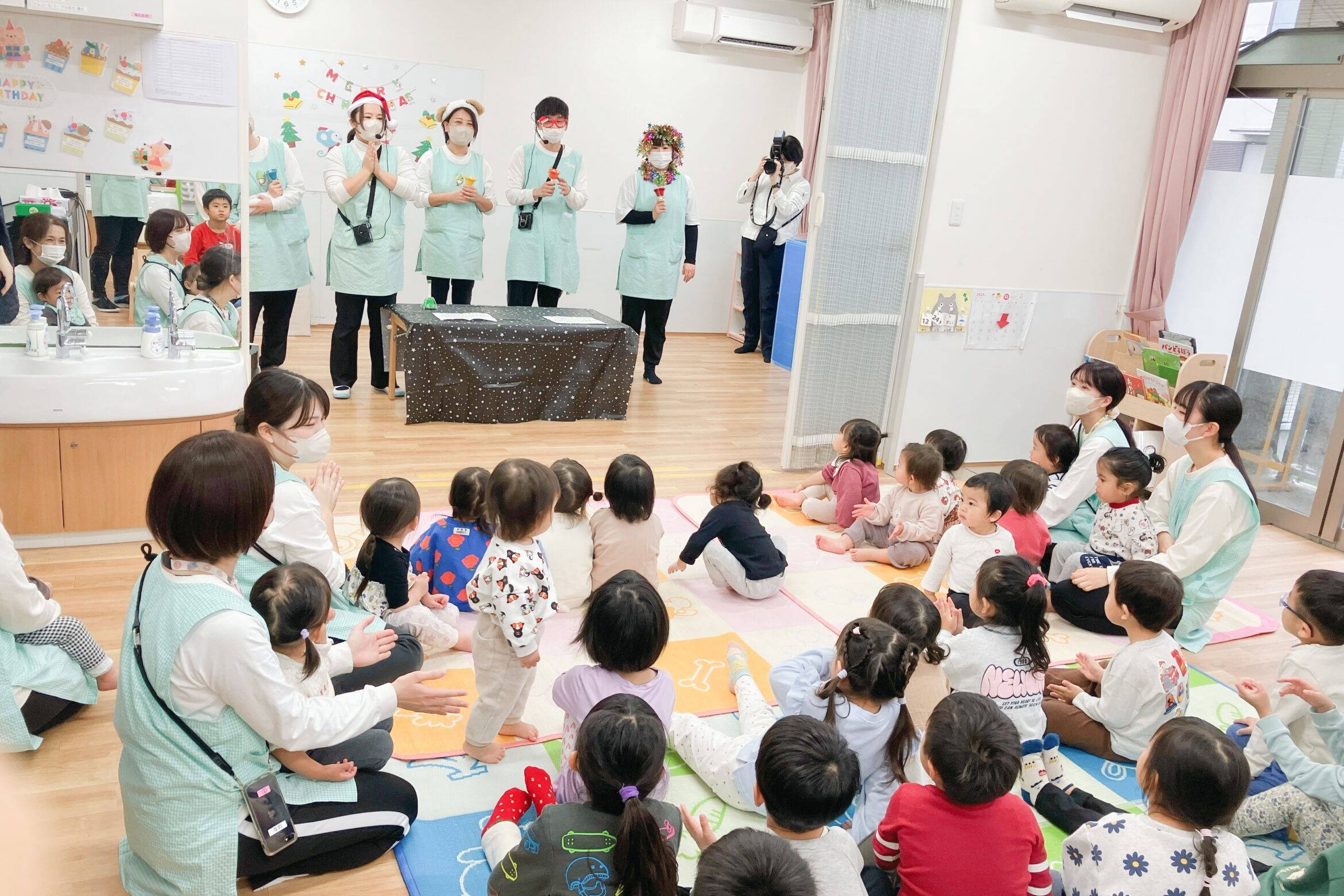 先生たちのハンドベルの演奏で子どもたちが楽しみにしていたクリスマス会が始まりました♪