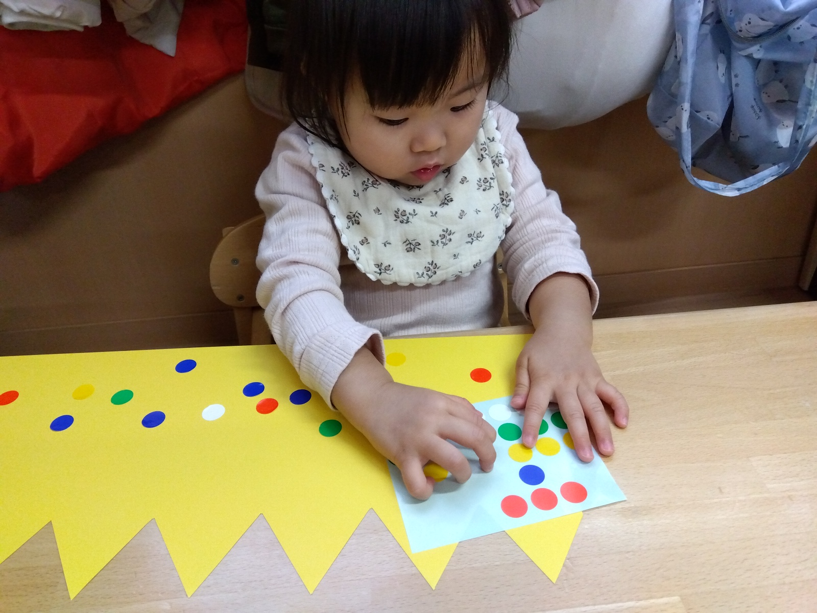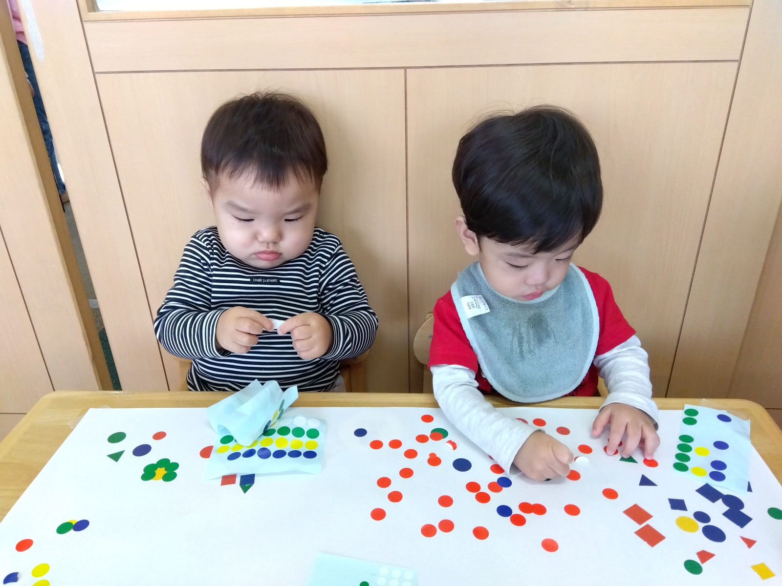 他のお友だちも「シールしたい!!」とテーブルに集まり、シール遊びが始まりました。