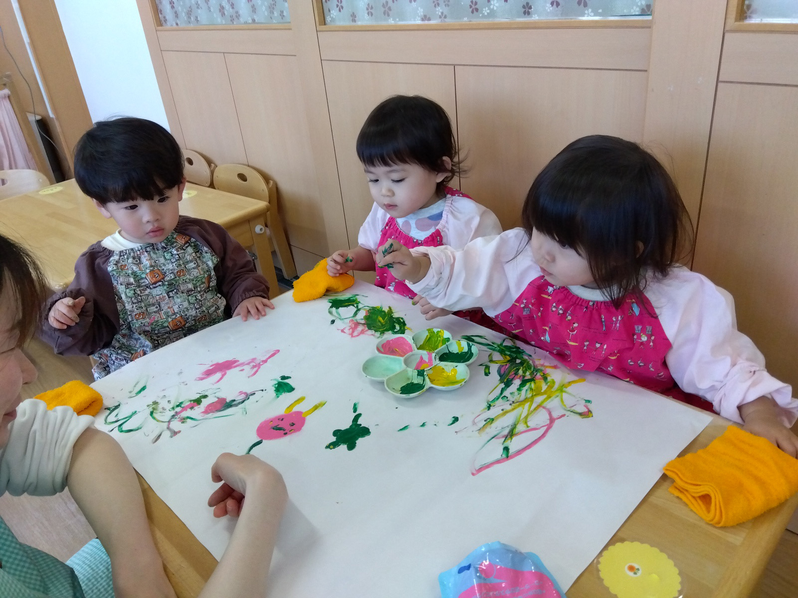 「シールだけではなく絵の具も持ってこようか」となり、お絵かきが始まりました。