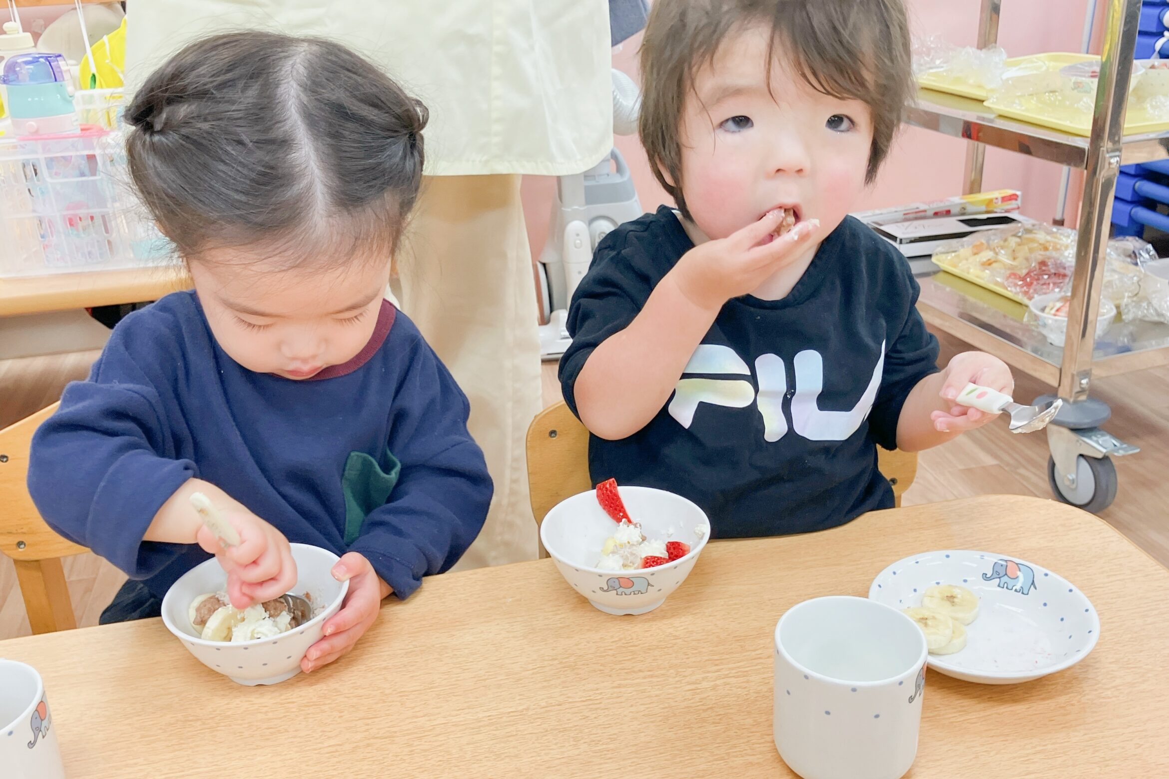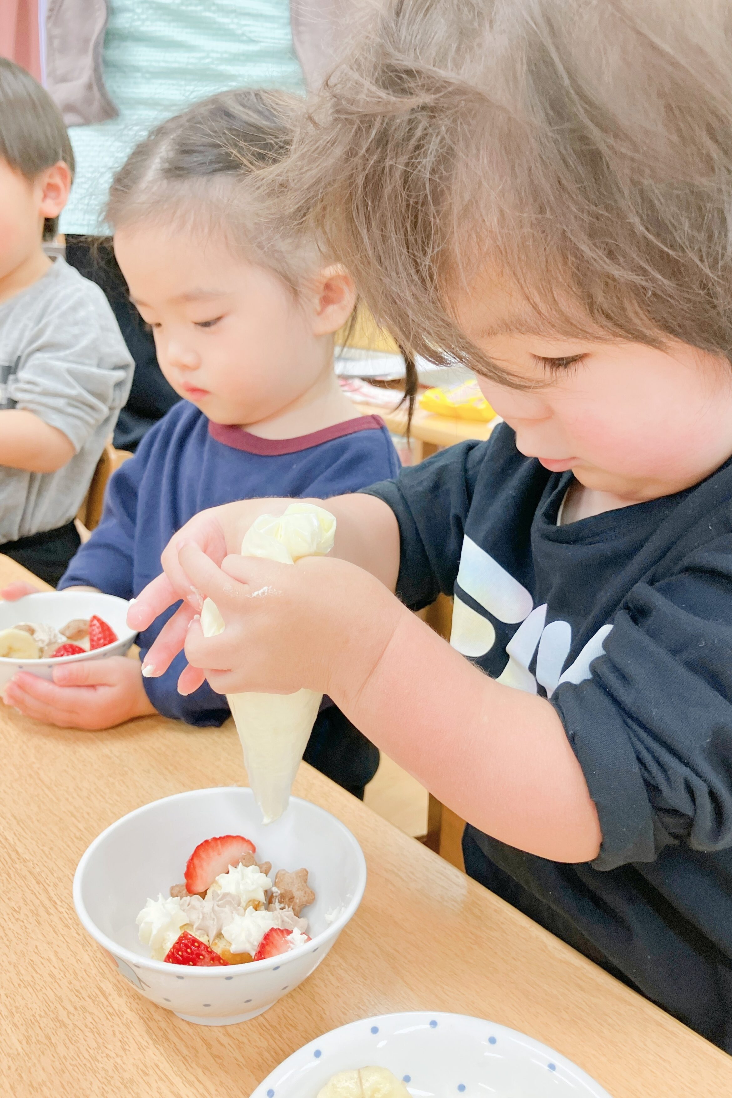 クリスマスにちなんで、クリスマス・パフェ作りを行いました🎄