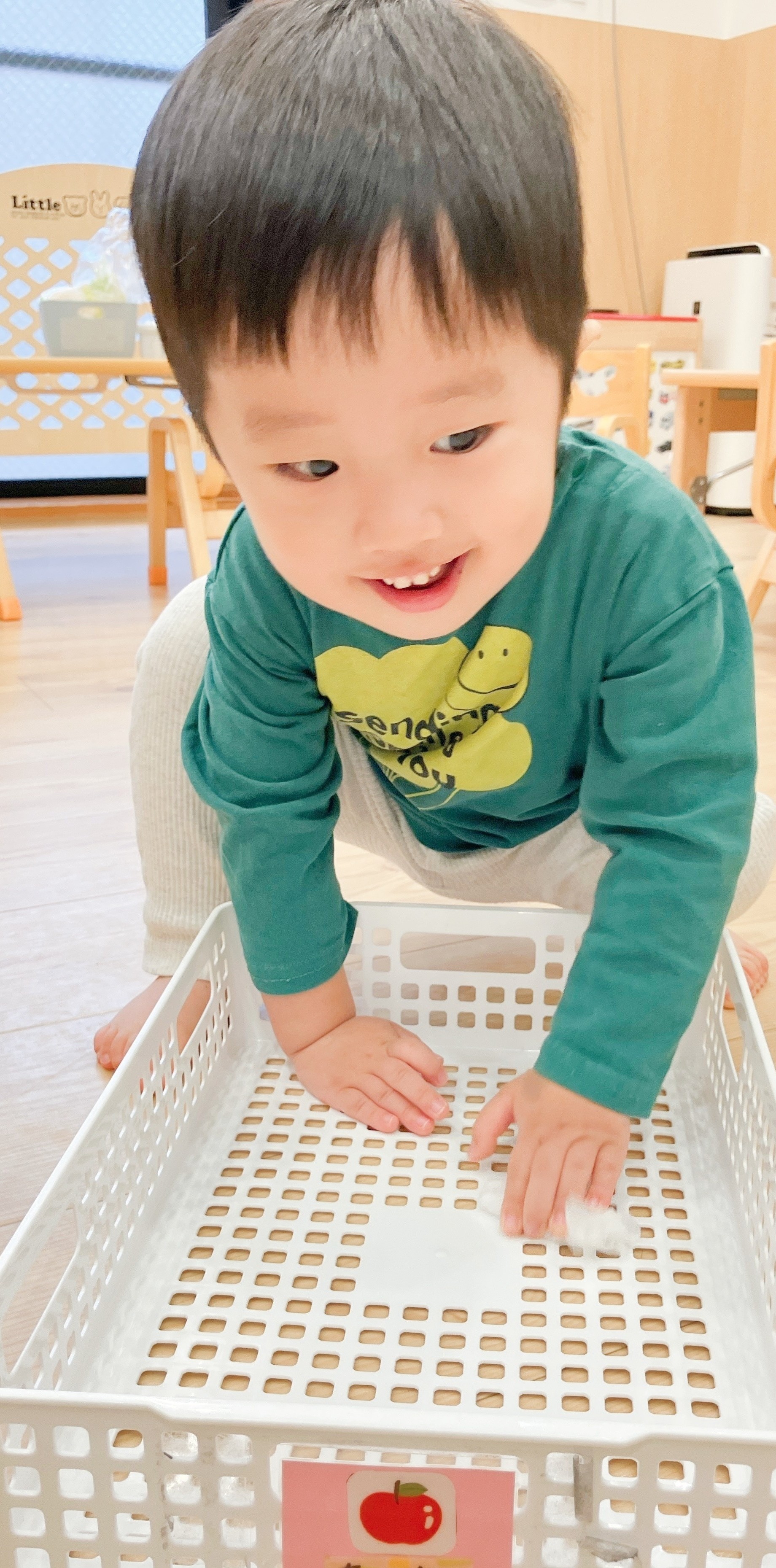 かごの中も拭き拭き♪楽しそうな表情を見せながら掃除を頑張っていました!