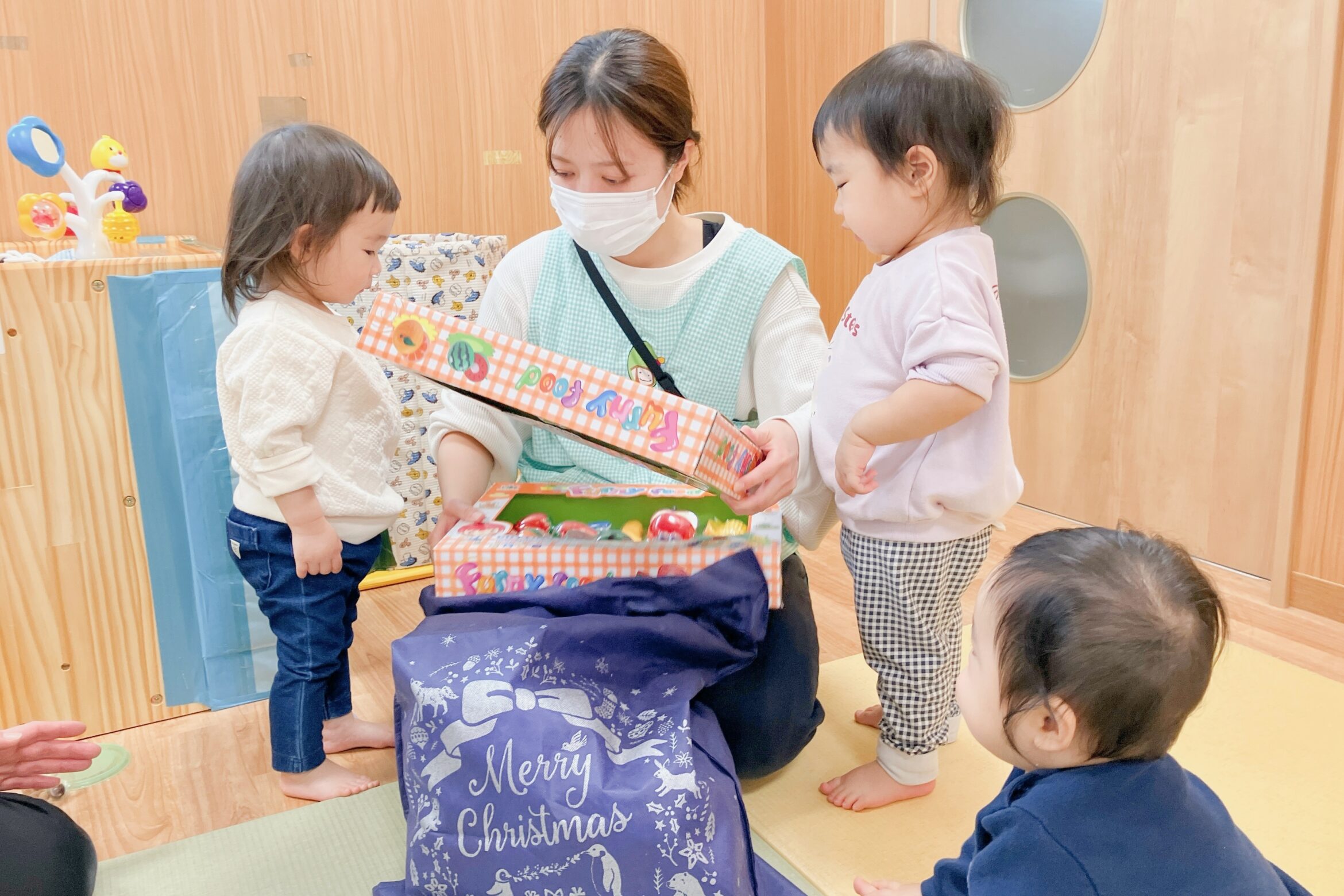 0歳児クラスへのプレゼントはおままごとセットでした♪