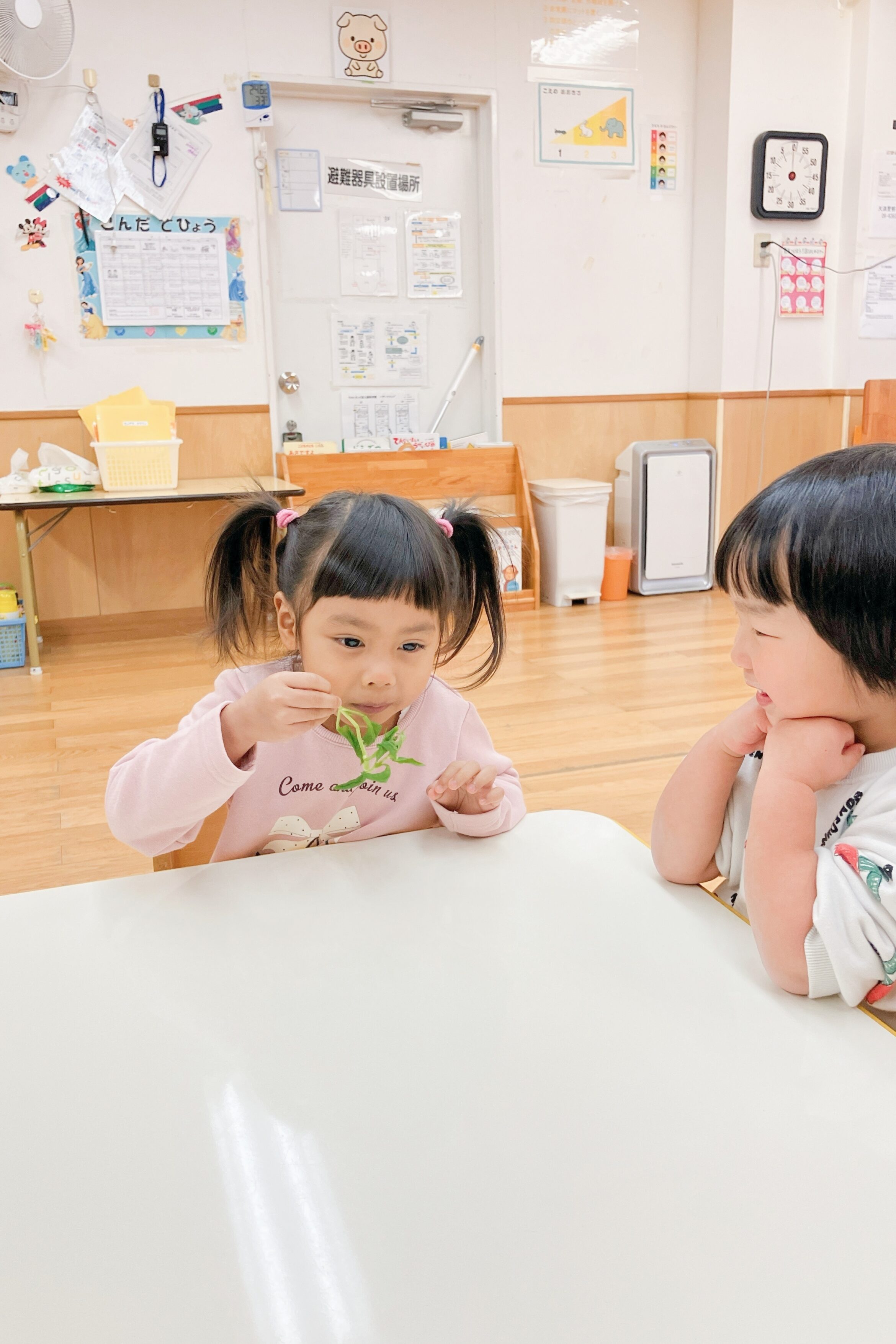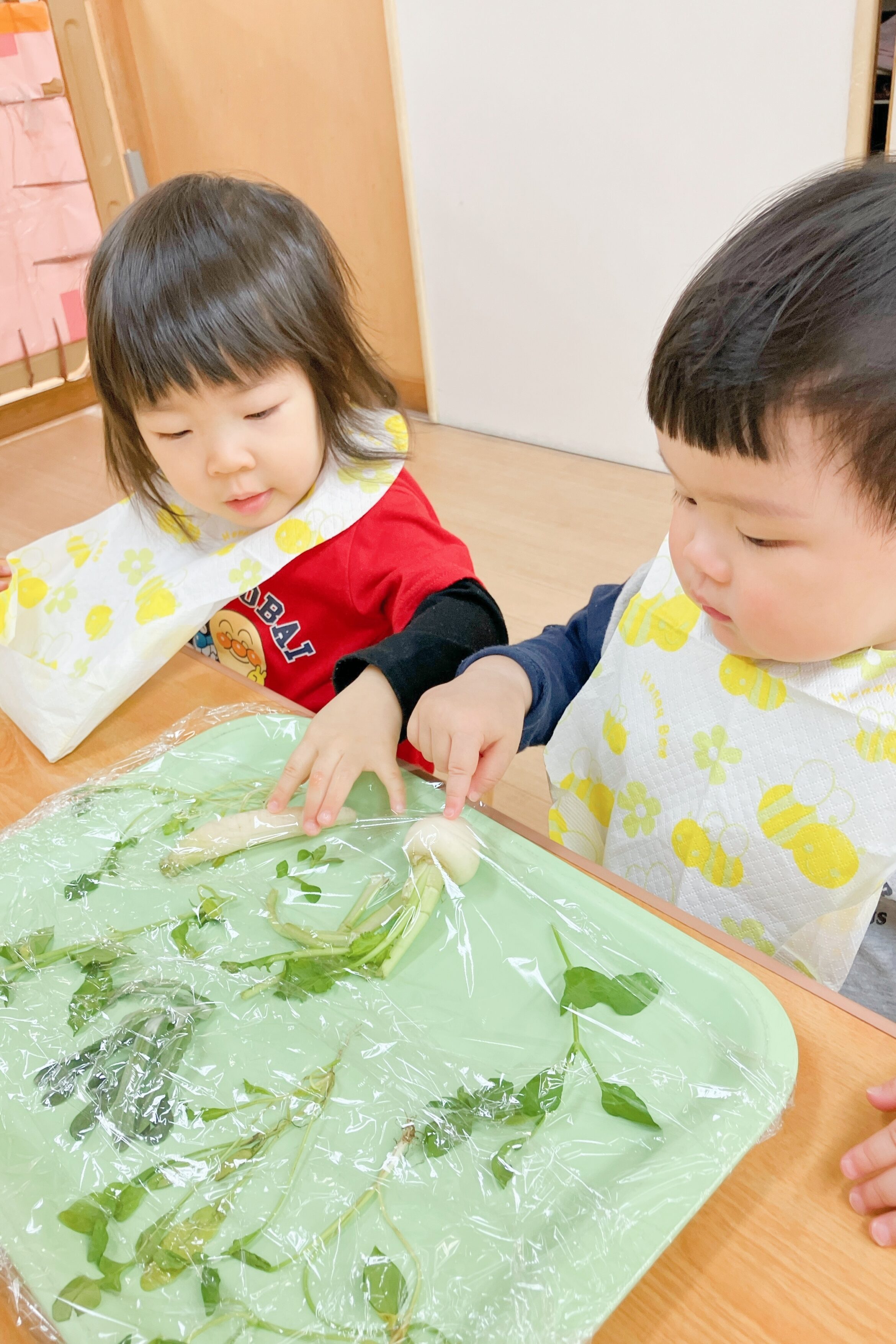 幼児クラスでは、せり・なずな・ごぎょう・はこべら・ほとけのざ・すずな・すずしろ 春の七草のうちどれか一つを覚えてみよう、とみんなでチャレンジ。