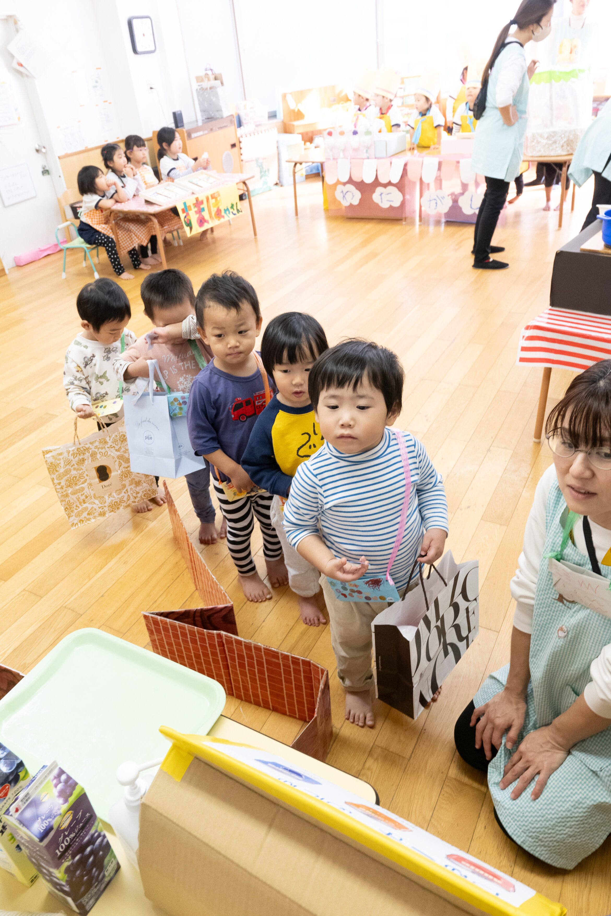 小さいクラスのお友達も、お買い物袋を持って買いに来てくれました。