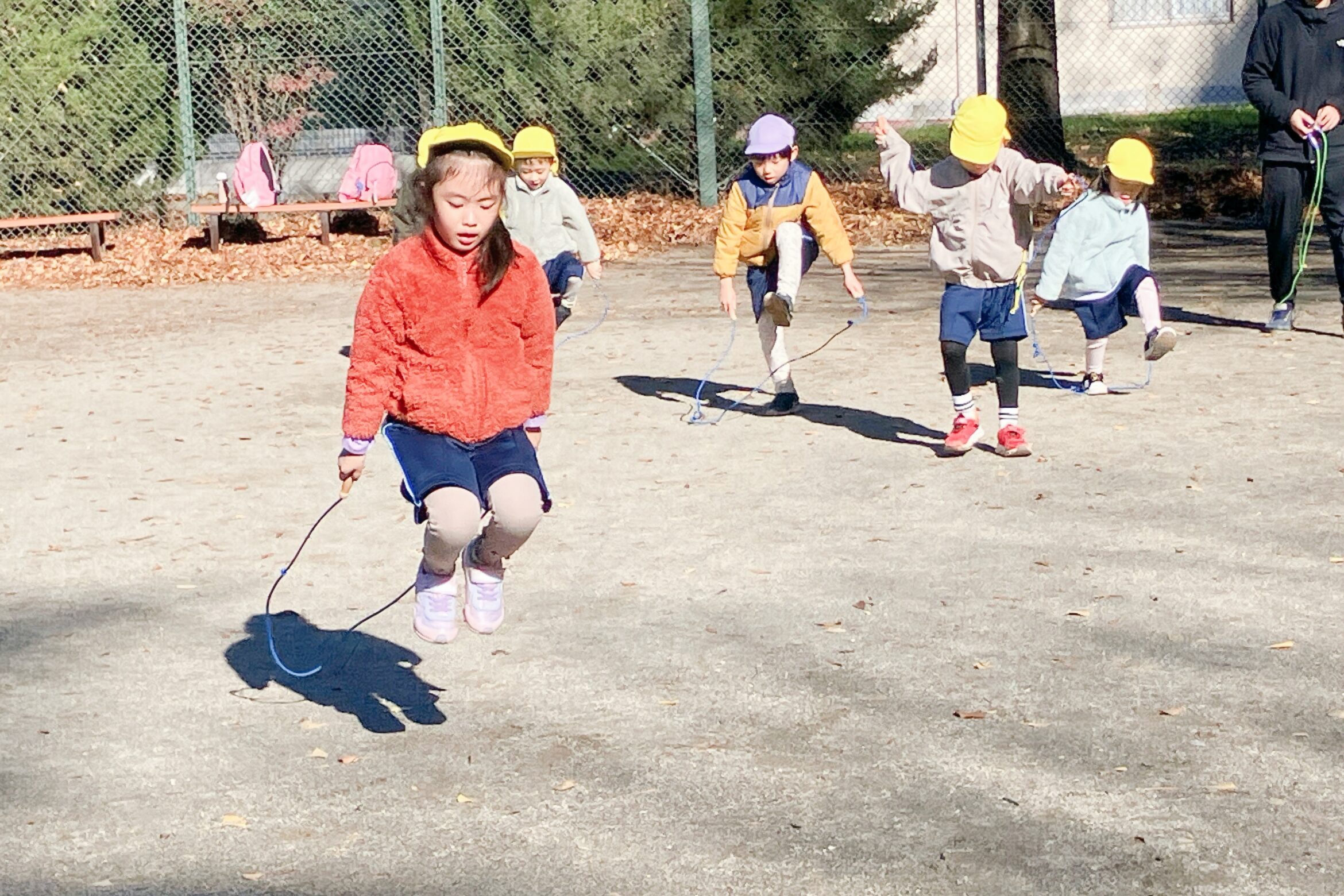 寒くてもへっちゃら!なわとびでたくさん全身を使って「あつい~」と上着を脱ぐこともあります。