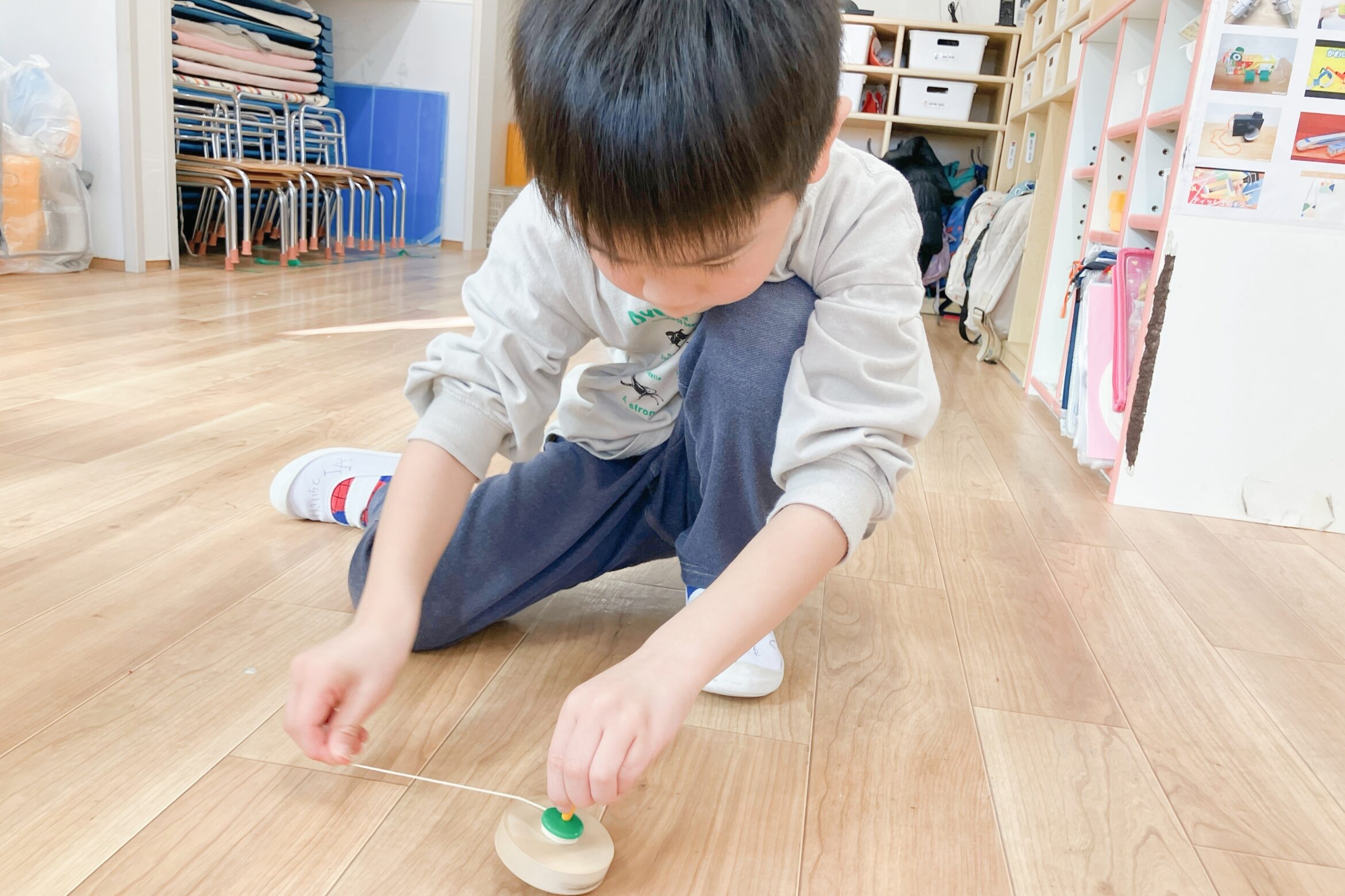 コマ回しも慎重に慎重に・・「うまく回れ!!」