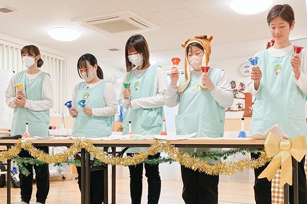 先生たちからのハンドベルの出し物もありました♪「ジングルベル」「きよしこのよる」を演奏しました!