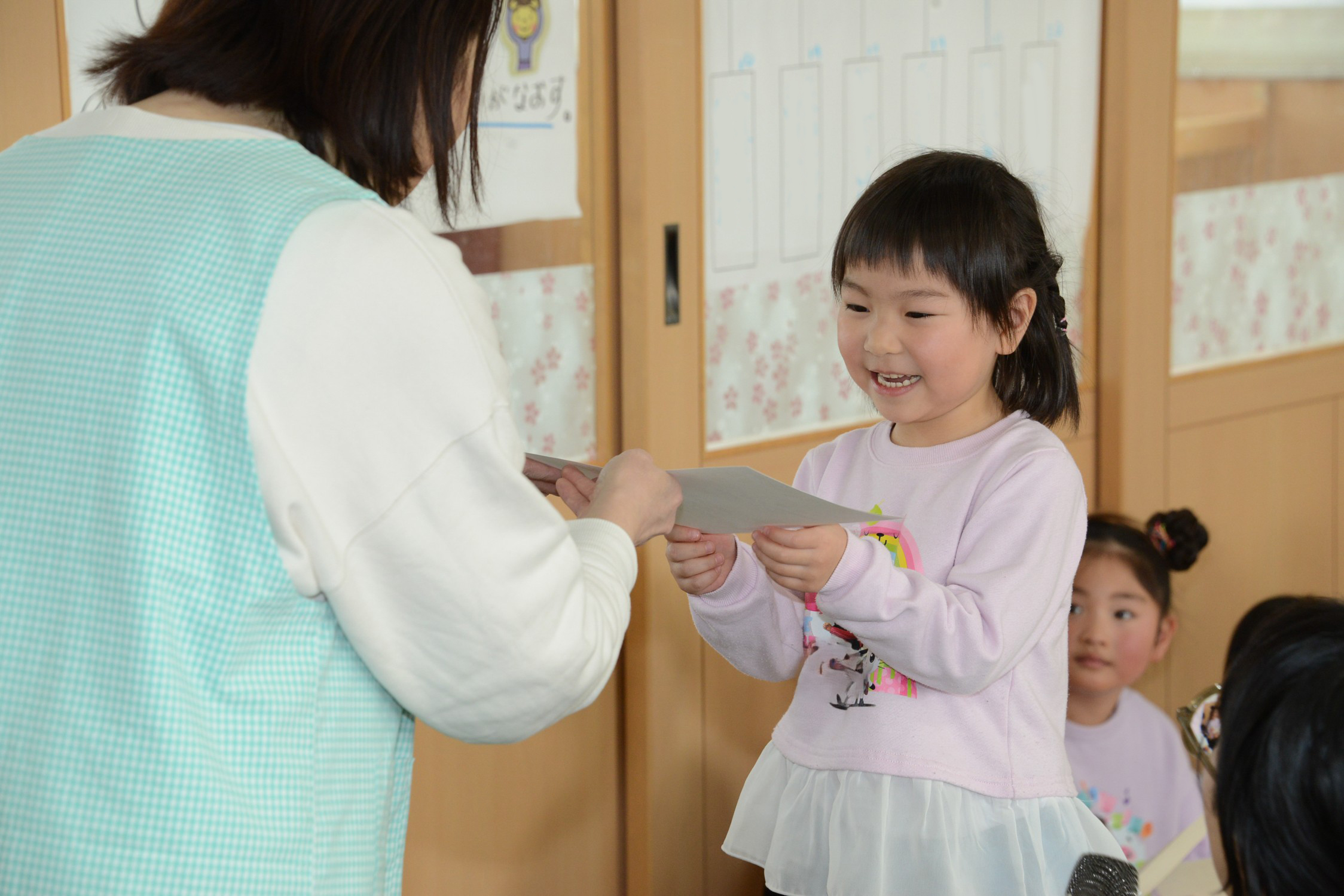決勝戦に出場したお友だちは表彰台に上り、賞状をもらいました。