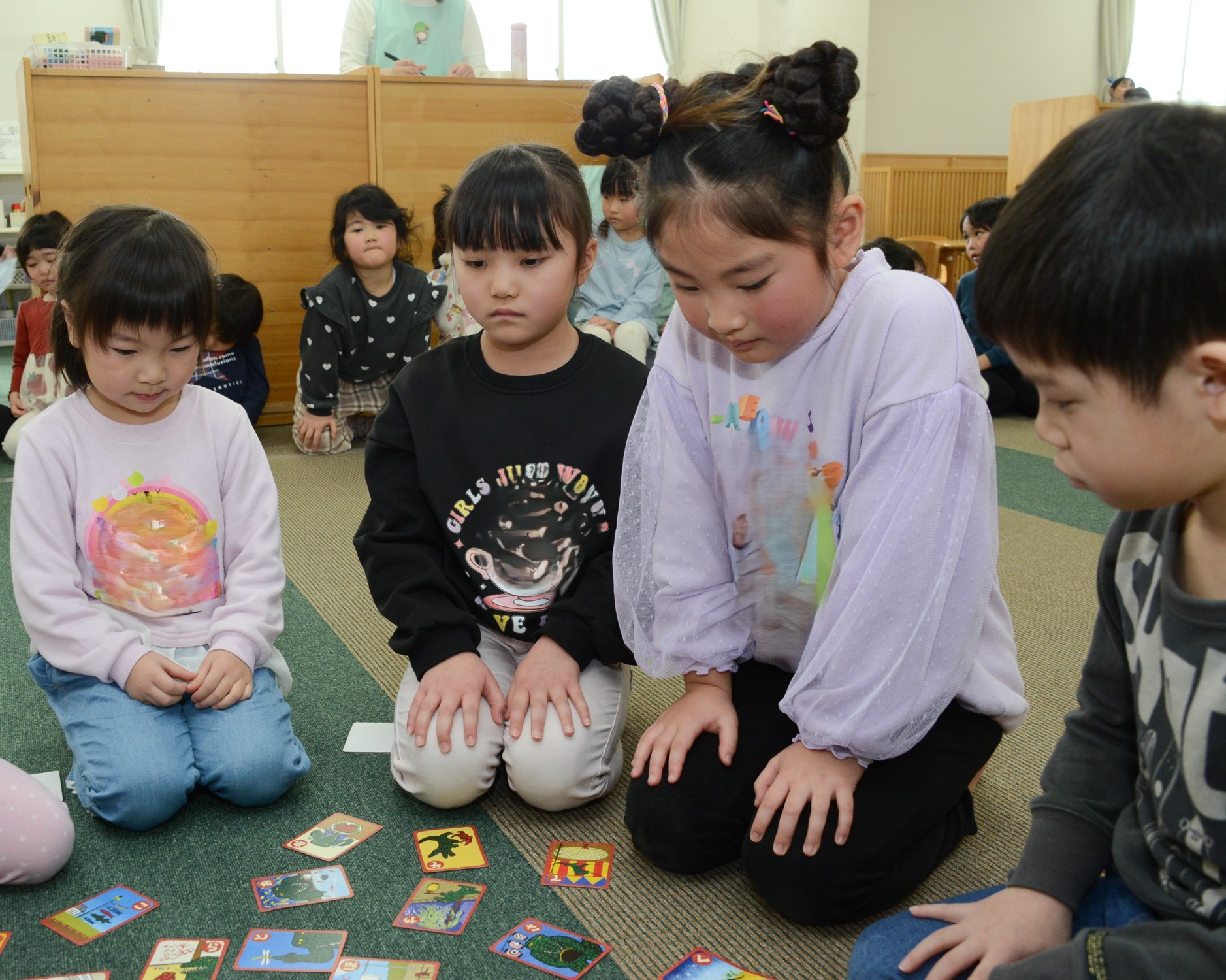 たくさん取れて喜んだり、悔しくて泣いたり、かるた大会ではいろいろな子どもたちの思いがあふれています。