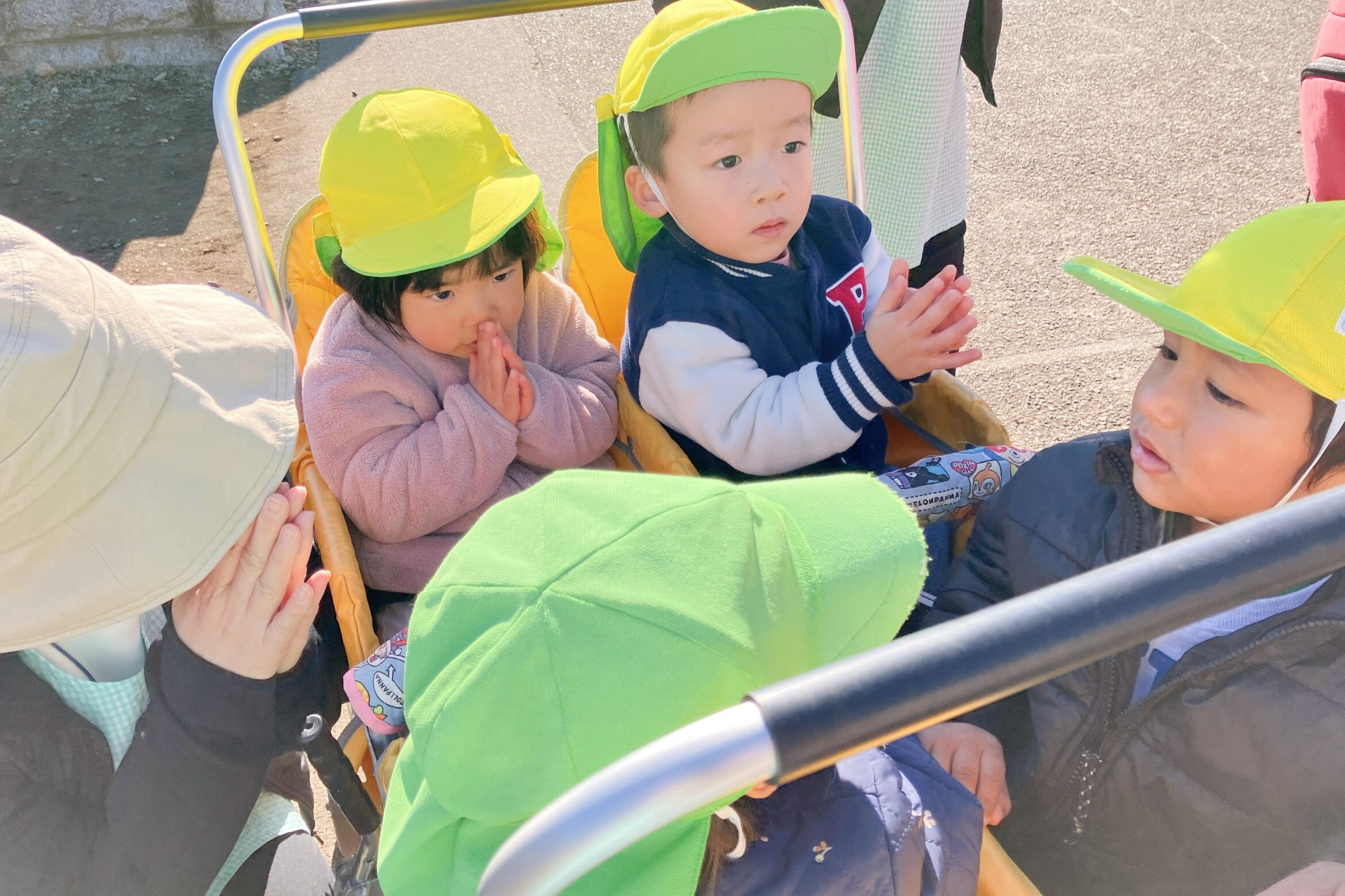 子どもたちは、興味津々で絵本を静かに見てお正月について学んでいました。お話が終わった後は、近くの神社へ行き、みんなで新年のご挨拶へ向かいました。