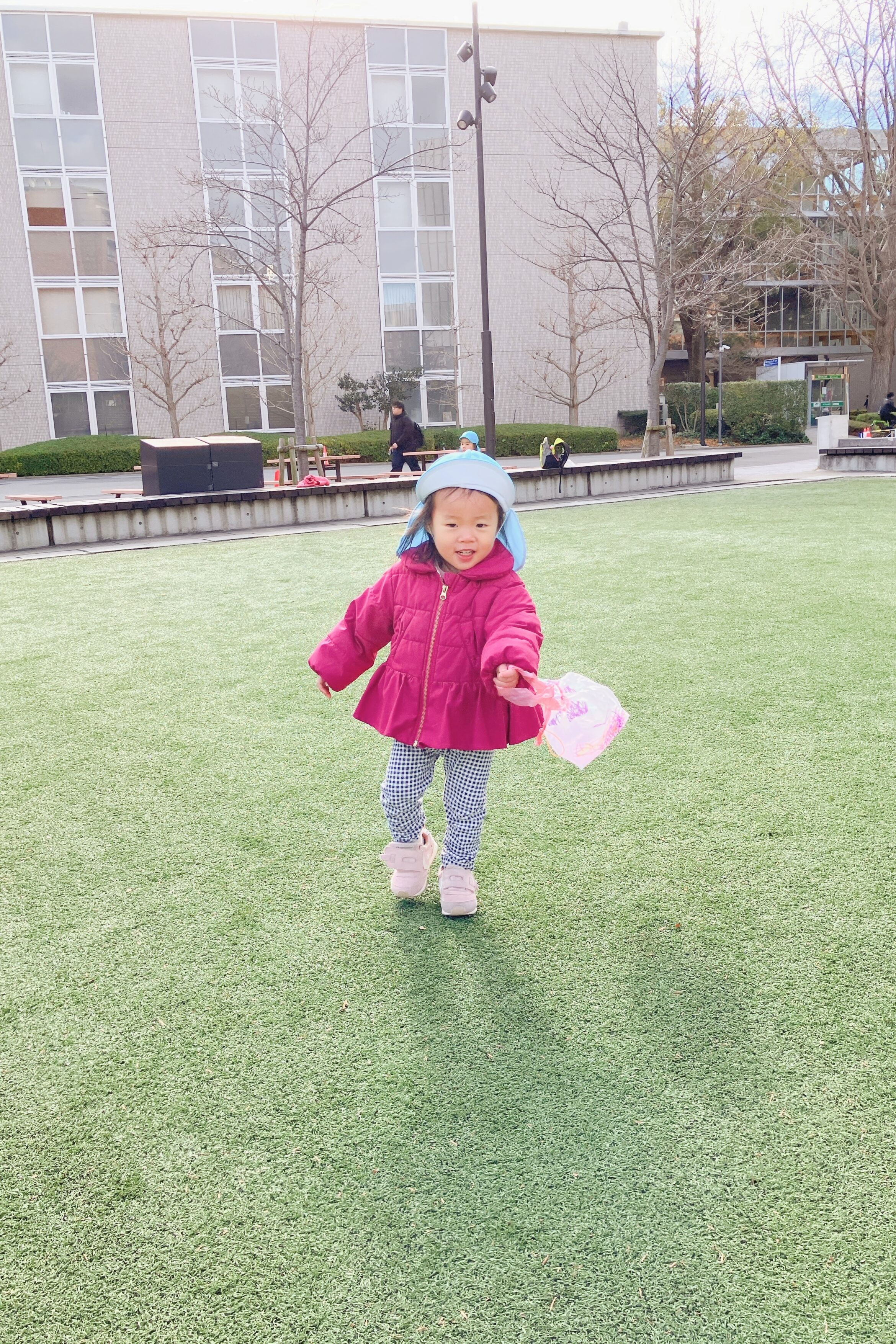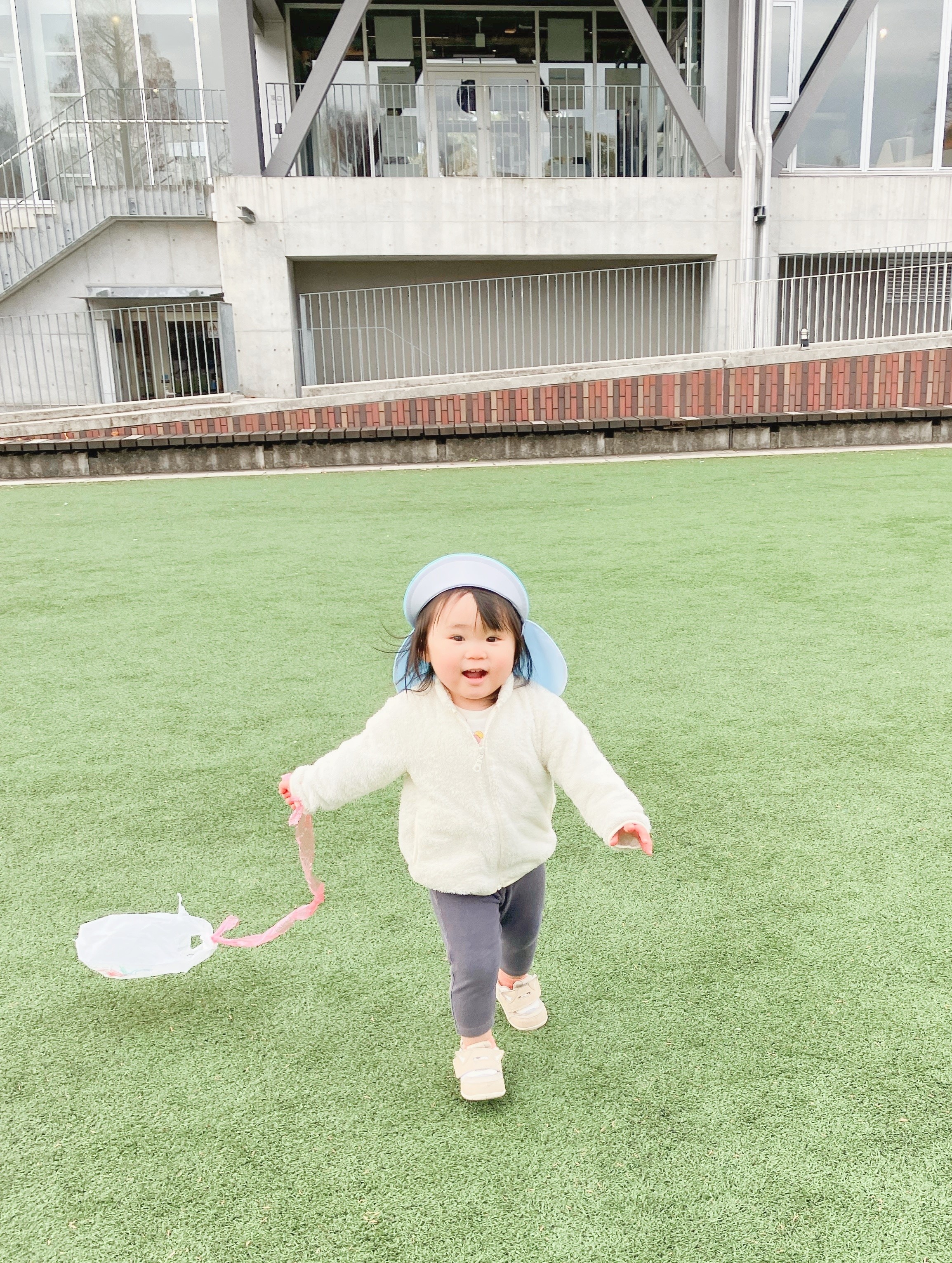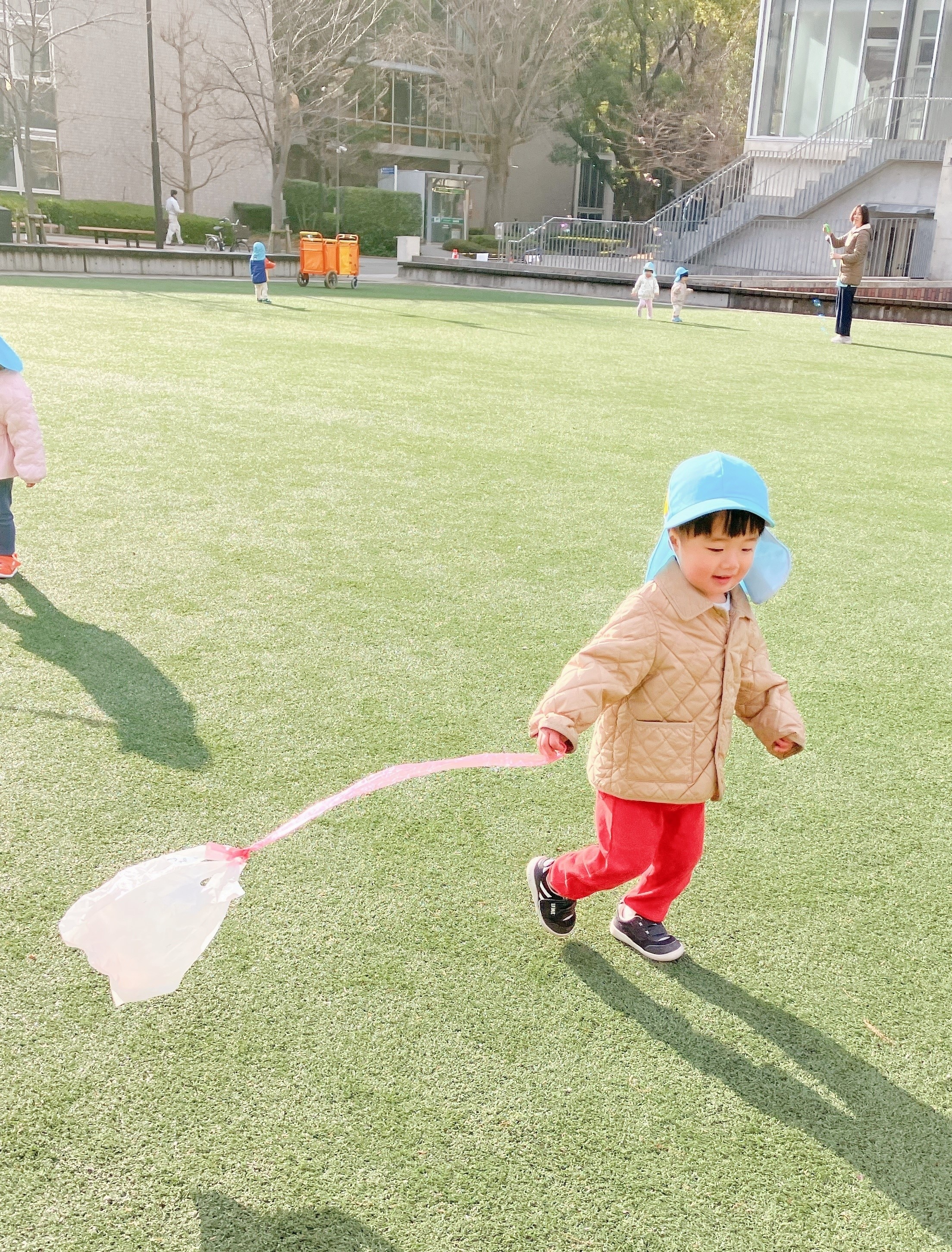 広い芝生の上をたくさん走って、凧あげを楽しみました!