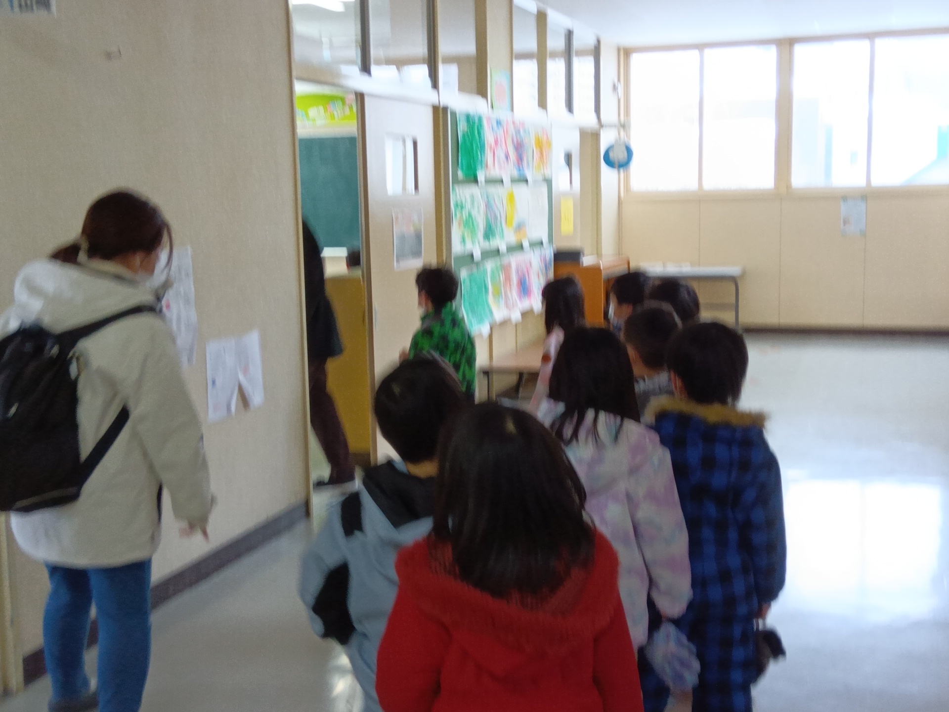 2月のある日。近隣の小学校に、学校探検と1年生の授業見学に行ってきました。