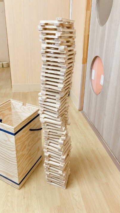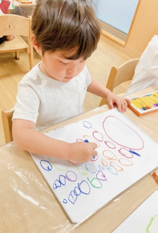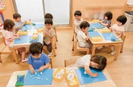 ・粘土遊びでは、○は簡単に作れても□や△や♡は難しく「どうやって作るか教えて!」と聞いてくる子が多くいた。