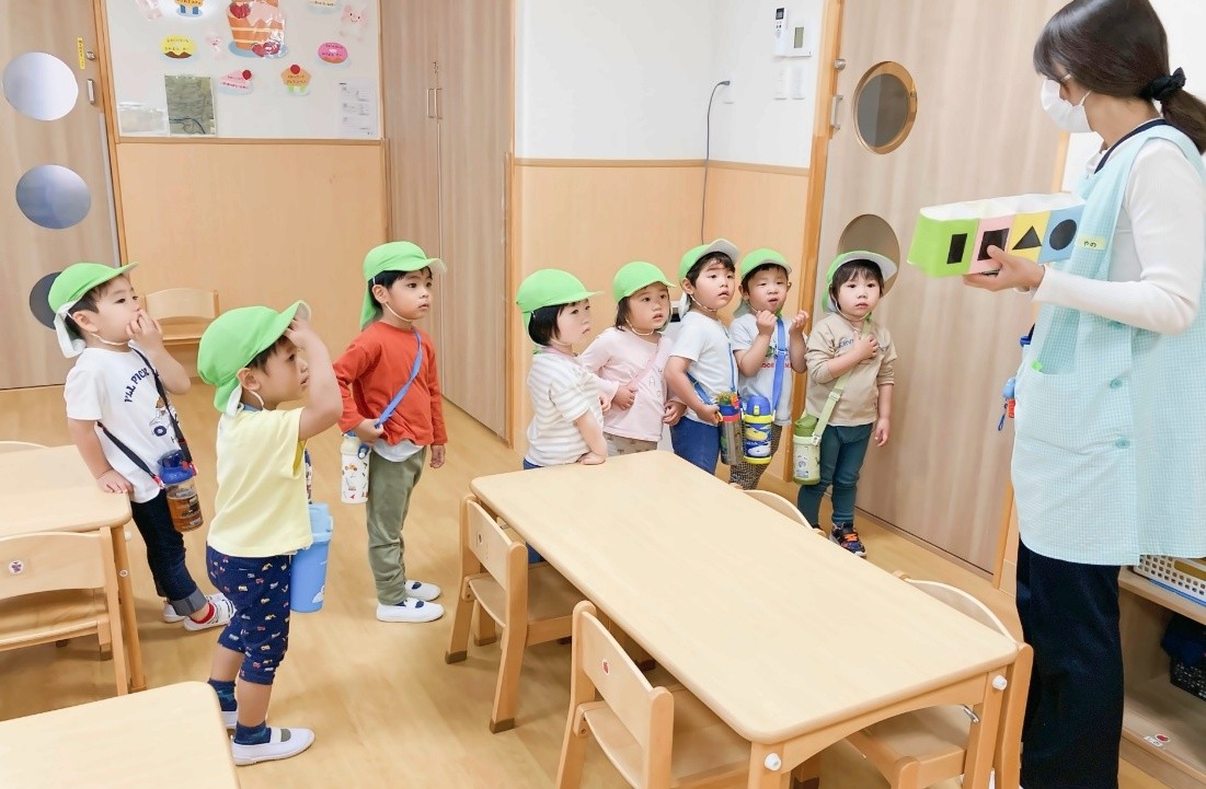 ・行った遊びを降園時に保護者へ伝えたり、おたよりやクラス前に掲示した案内を通して遊びの内容を伝え、「お散歩中や園の帰り道にも形探しをやってみました!楽しかったです」などの声を保護者からいただくことができた。