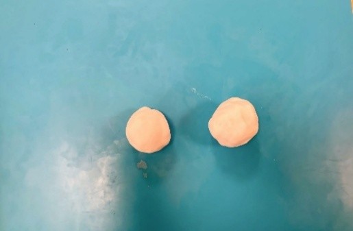 粘土での○づくりは、手のひらで転がしながら丸く作る際、転がってしまったり、うまく丸にならなかったりしましたが、慣れてくるととてもきれいな丸を作ることができるようになりました。