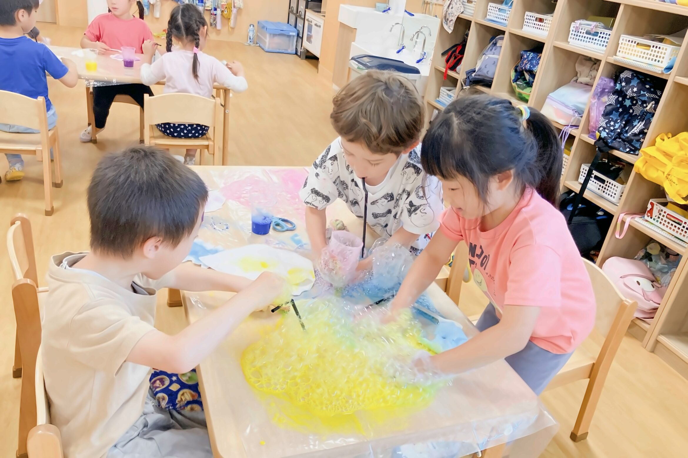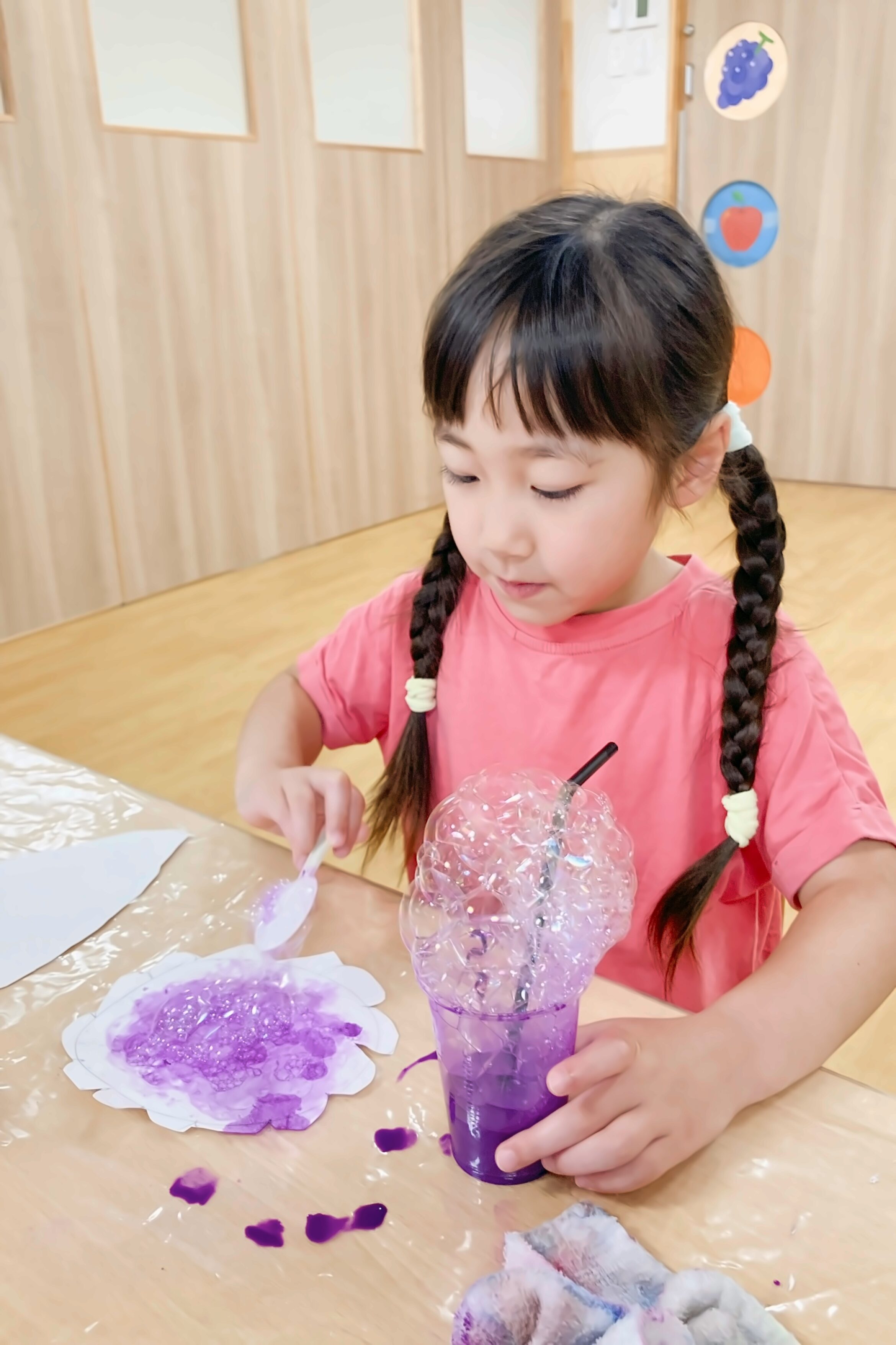 色のついた泡でも遊んでみました。
