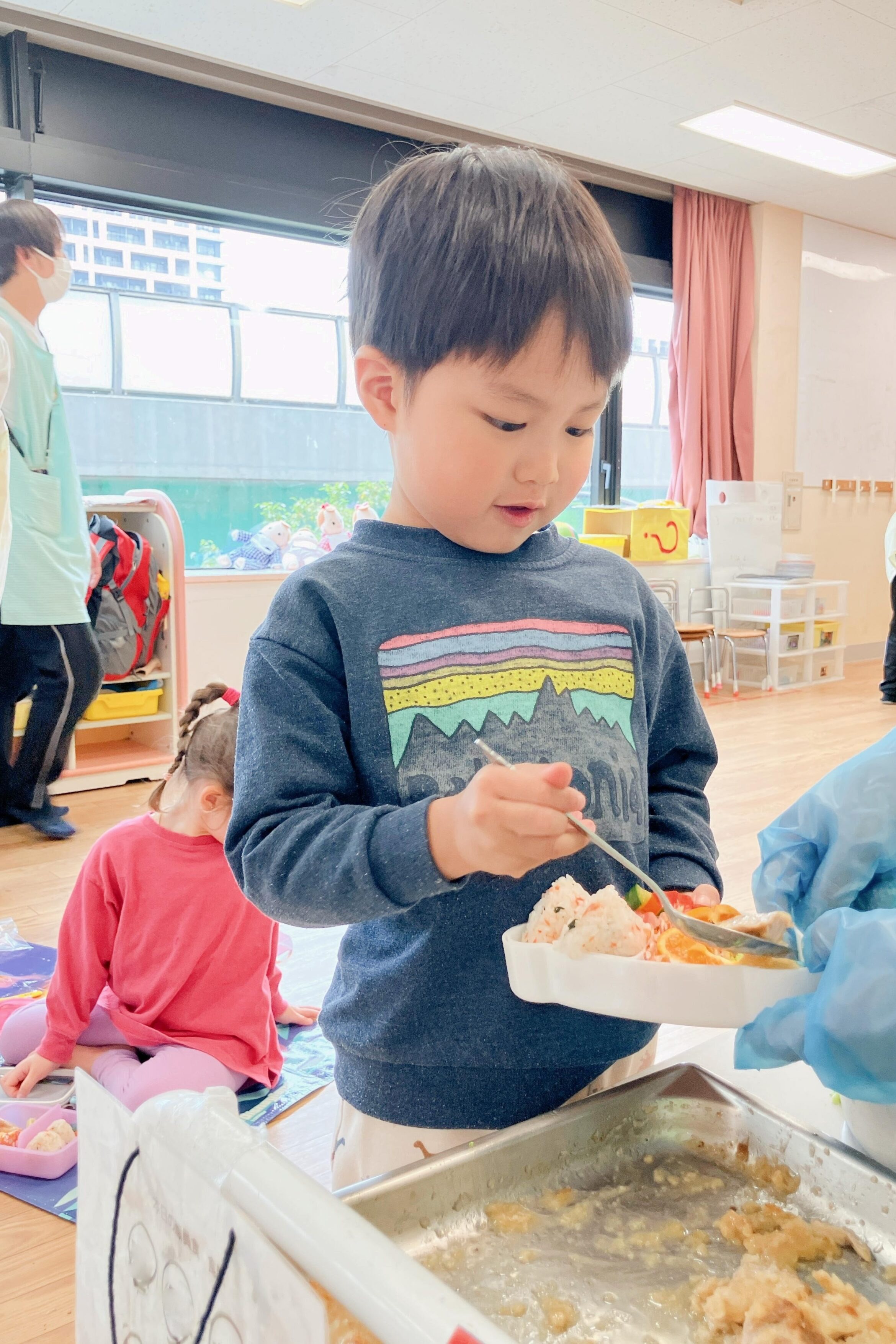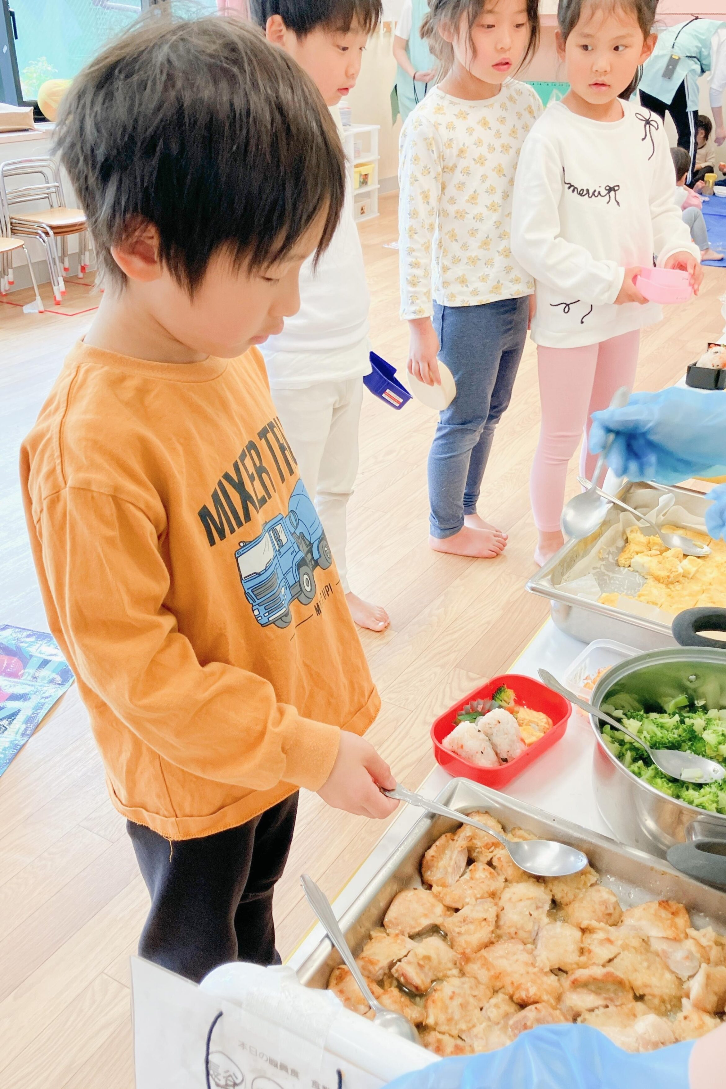 ちゃいれっく月島駅前保育園では、毎月食育を行っています。今年度最後の食育として、全クラスで室内ピクニックを開催しました。