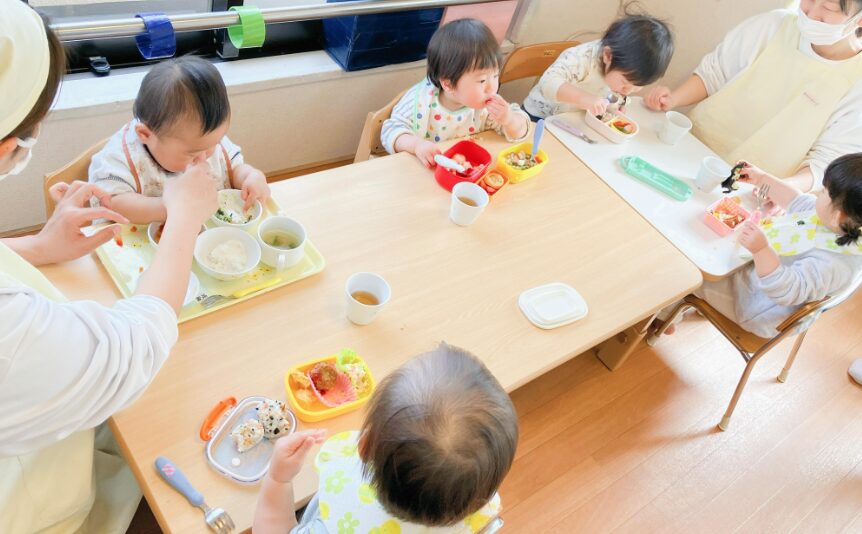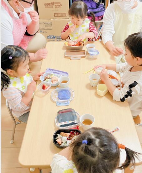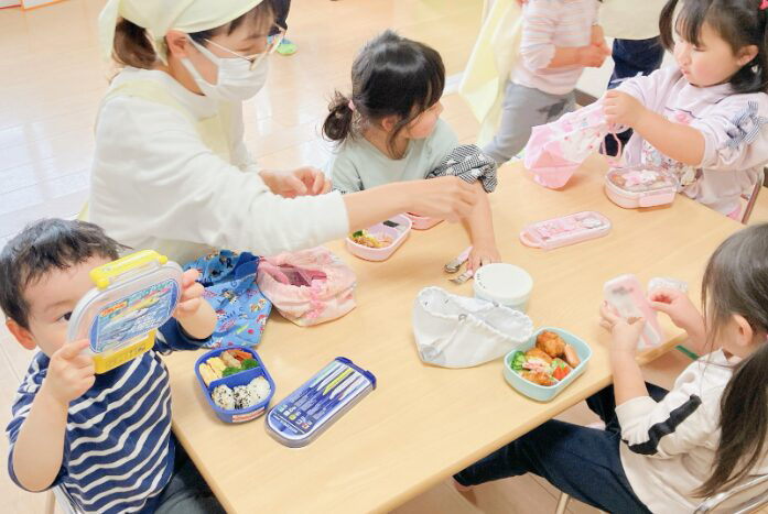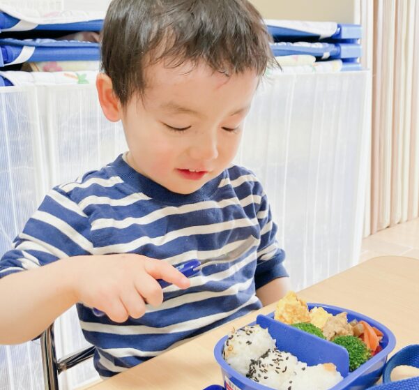 以前いた園児さんでお皿で食べることが当たり前で、お弁当から食べることに緊張してしまい、なかなかフォークが進まない子がいました。
