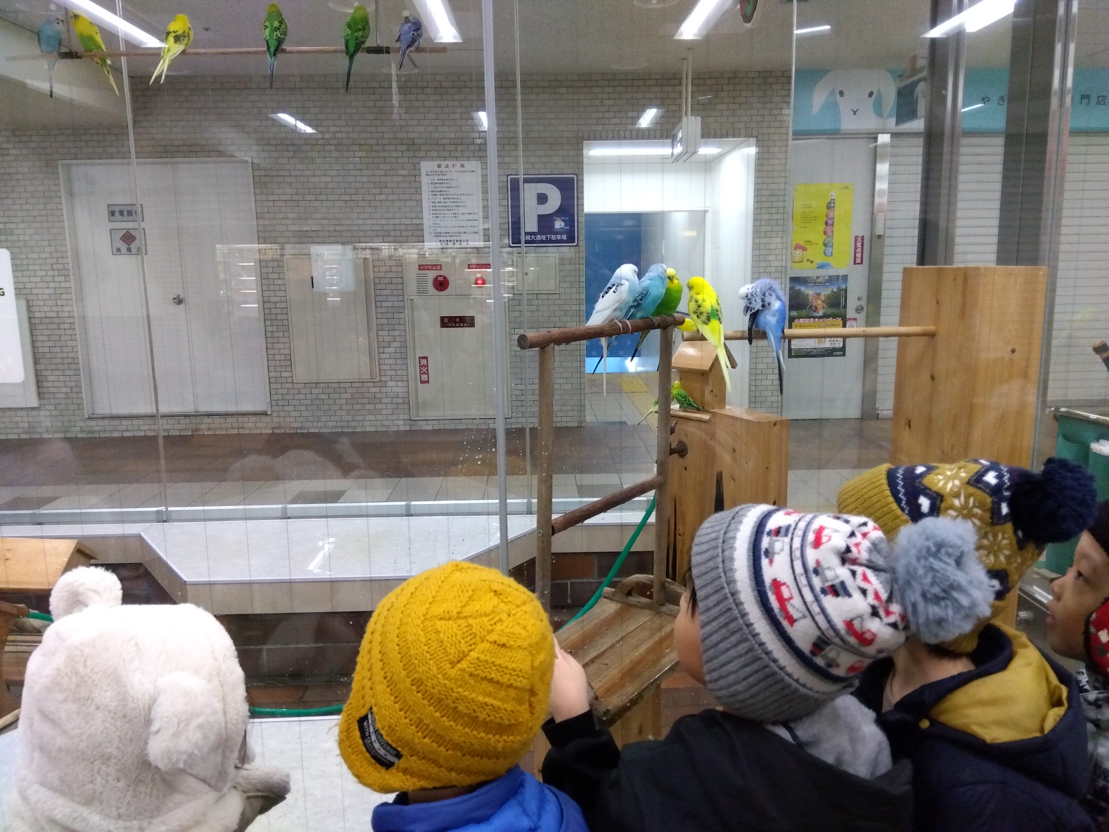 集まっているインコたちを見て、「お話し合いしてる!!」と楽しそうにその様子を見ていました。