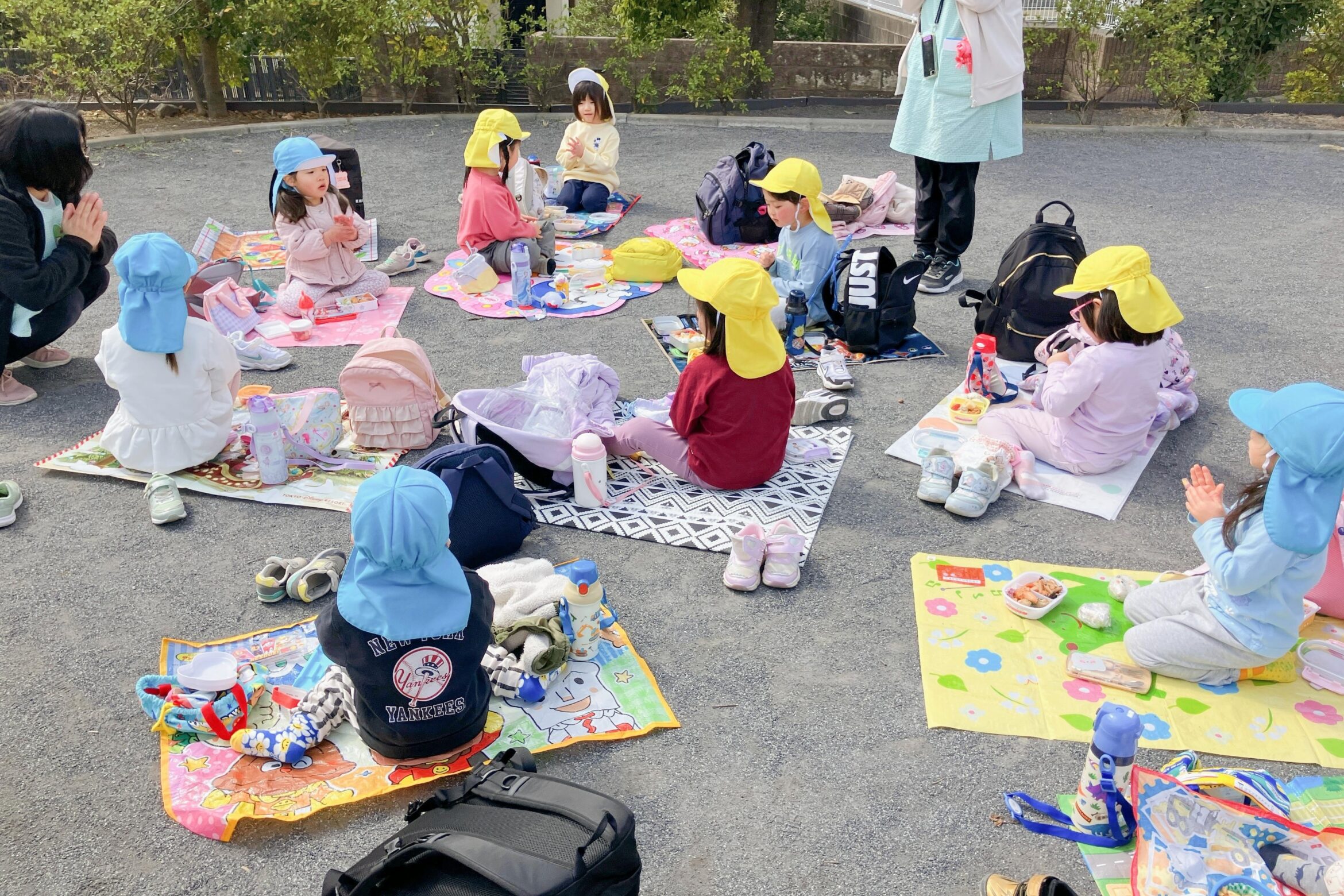 2026.04.14 前田町保育園 お別れ遠足 最後の思い出づくりとして、2クラスごとにお別れ遠足に行ってきました。 【0・1歳児】いつもより少し遠い公園まで遠足に出かけました!がんばって歩けたよ~! 【2・3歳児】公園でレジャーシートを広げてお弁当です!モグモグおいしい!! 【4・5歳児】新江ノ島水族館まで行ってきました!イルカショーを楽しみました♪ 保護者の方につくってもらったお弁当を、園児たちがおいしそうに食べていたのが印象的でした。 いい思い出ができたね!