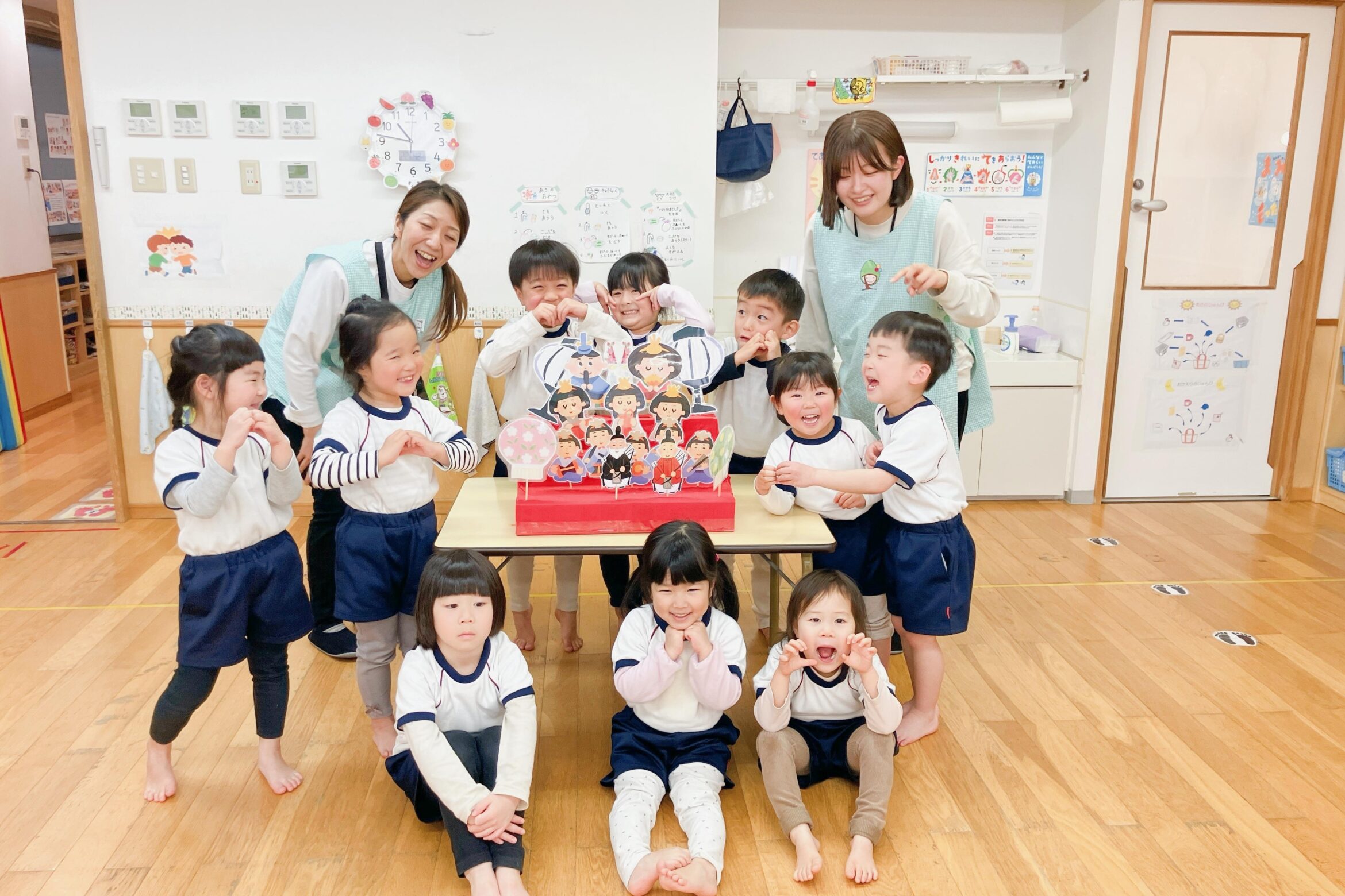 異年齢で毎日行うリズム遊びは、指先から足先までの全身運動!全員で行うからこそ、大きなお友だちを見て刺激を受けたり、見て学んだり、順番を守ったり…非認知能力が身につきます。