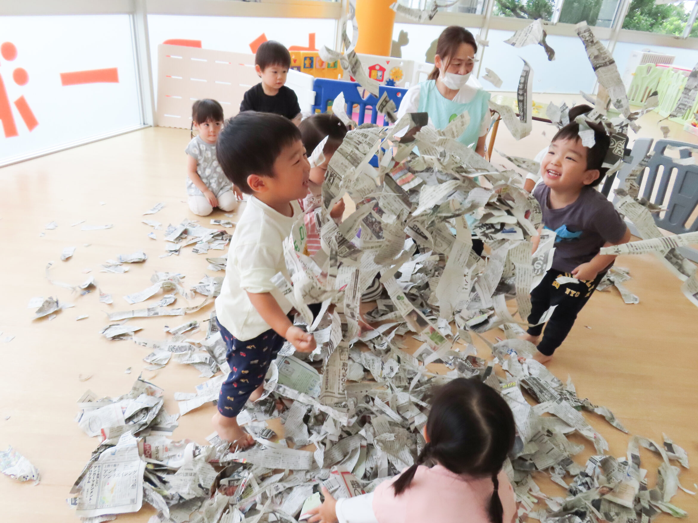 新聞紙あそびをしたよ!