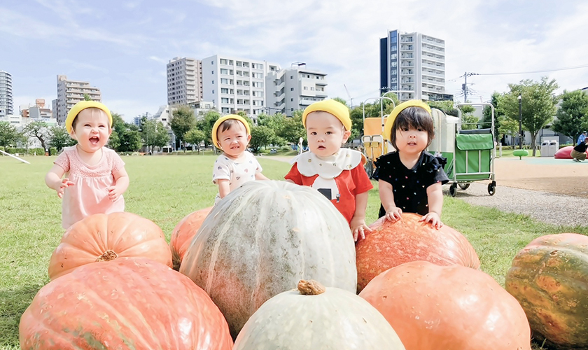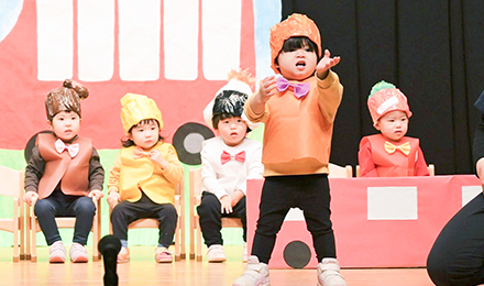 クッキング保育に野菜栽培など、食材に直に触れて「食」への興味関心を持てるようにサポート。また、読み聞かせとの連動も遠し、子どもたちの「ワクワク!」を高めます。