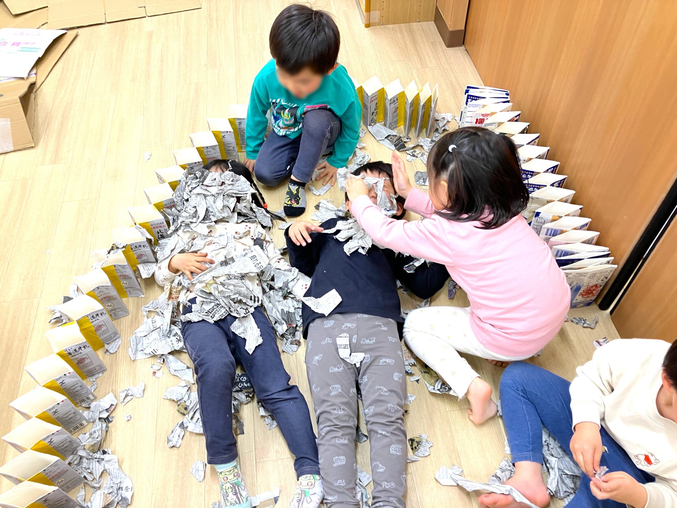 異年齢で毎日行うリズム遊びは、指先から足先までの全身運動!全員で行うからこそ、大きなお友だちを見て刺激を受けたり、見て学んだり、順番を守ったり…非認知能力が身につきます。